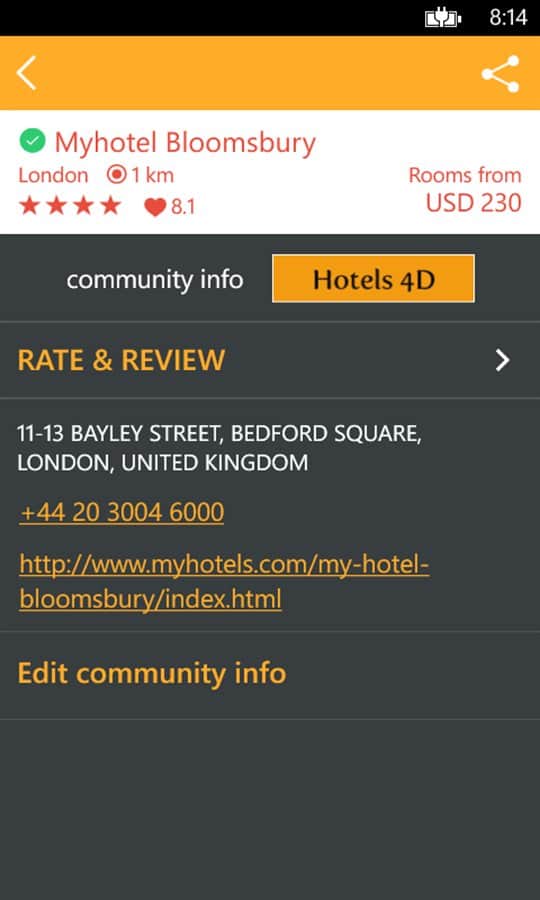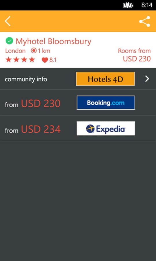 Hotel Finder - программа на windows phone которая поможет в незнакомом городе найти нужный вам отель. Можно задать нужные вам критерии поиска, и программа выдаст нужный вам отель. Программа отлично подойдёт для туристов, командировочных и других людей которые часто путешествуют.