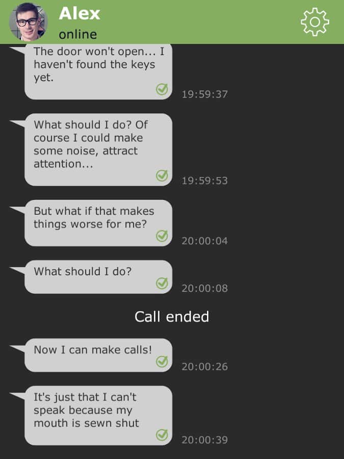 Hotel Silence / Отель Молчание - Интересная игра которая выполнена в стиле текстового приключения. Этот жанр игры вам несомненно знаком по играм: Lifeline и The Martian. Но история игры совсем не похожа на предыдущие. Вы получаете сообщение от человека по имени Алексей. На первых же минутах вы узнаете, что у Алексей зашит рот и отрезан один палец на ноге. Где он находится? Кто это сделал? и самое главное, зачем?! Всё это вам нужно будет разузнать. Но будьте аккуратны, любое ваше сообщение может повлиять на ход событий и на жизнь Алексея...