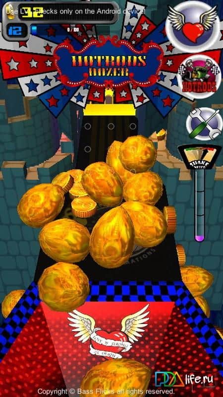 Hotrods Dozer - монетный бульдозер вернулся из капитального ремонта и теперь выдает еще больше золотых монет. Нажимайте на монетки, и они будут сыпаться на конвейер, и тем самым вы будете зарабатывать бонусы и подарки. А также у вас будет возможность получить специальные монетки и соревноваться со своими друзьями и игроками со всего мира.