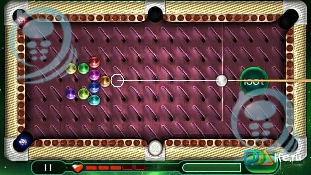 Игра для symbian представляет собой неплохой аркадный бильярд с простым управлением. 3 уровня сложности. Игра - одиночная. Вам предстоит забить шары в нужную лузу, для этого у вас есть 5 попыток. Если попадаешь - жизнь прибавляется, а если промах - теряешь жизнь. Все просто до нельзя! Бейте смело по шару и переходите от уровня к уровню - вас ждет Пепельница, Закрытая Луза и много других трудных и не очень уровней.
