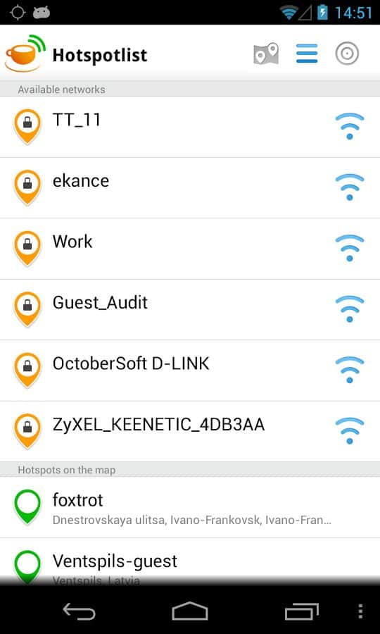 Hotspotlist - Бесплатный WiFi – отличное приложение для андроид, которе сослужит вам великолепную службу в поиске WiFi сетей по всему миру. К тому же у вас есть возможность поучаствовать в проекте, предварительно просканировав город и отправив данные на сервак для дальнейшей обработки. Ну, а результаты вы видите как непосредственно в приложении, так и на самом сайте.