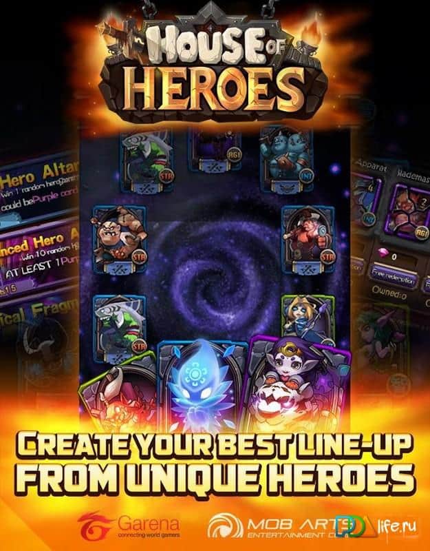 House Of Heroes - карточная игра созданная в юго-восточной Азии, теперь и в ваших телефонах на андроид. Соберите свою команду из красиво сделанных героев и создайте своих неповторимых героев, комбинирую свойств и способности остальных. Попробуйте все захватывающие режимы этой игры такие как: PvP, PvE, и Tower Challenge и бросьте вызов своим друзьям конкурируя с ними за лучшие места в этой игре. Вас ждут великолепные эффекты в бою и мощные заклинания, которые вы сможете применить против врага, участвуя в соревнованиях на арене в более 200 эпизодах.