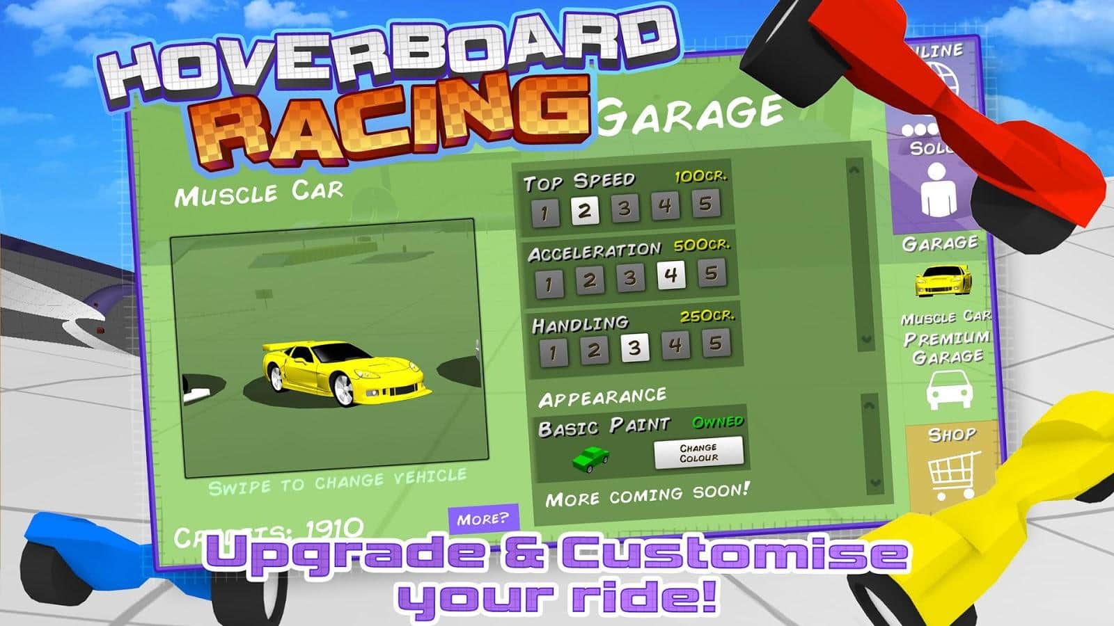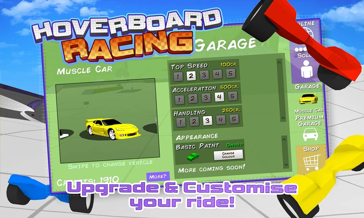 Вокруг уникальная арена, где игроку предстоит быстро перемещаться, чтобы стать экспертом езды на гироскутере. Разработчики Hoverboard Racing предлагают сразу несколько режимов игры, включая мультиплеер, захват флага, атаку зомби и сбор монет. Каждый раз перед геймером будет стоять новая задача, связанная с быстрым перемещением по локации, чтобы в краткое время добиться своей цели и обойти в мастерстве других игроков, соревнующихся на этой же локации. Покупай новый транспорт и совершенствуй текущий, чтобы добиваться лучших результатов.