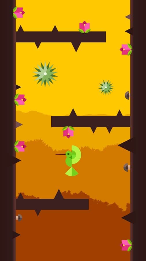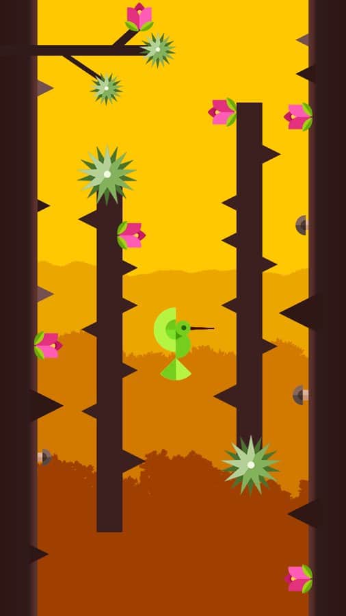 Hummer: The Humming Bird – игра на андроид, где вам необходимо управлять полетом колибри. Наша колибри летит через опасный лес, поднимаясь все выше и выше собирая по пути прекрасные цветы. Помогите ей преодолеть все опасности, вставшие у нее на пути в виде пил, шипов и ветвей и набрать достаточное количество очков. Чем больше цветков вы соберете, тем больше баллов у вас будет. Избегайте столкновений с препятствиями, иначе вы начнете игру заново. Тренируйте свои рефлексы и устанавливайте рекорды, получая доступ к новым уровням. Игра порадует вас оригинальной графикой и разнообразными мирами.