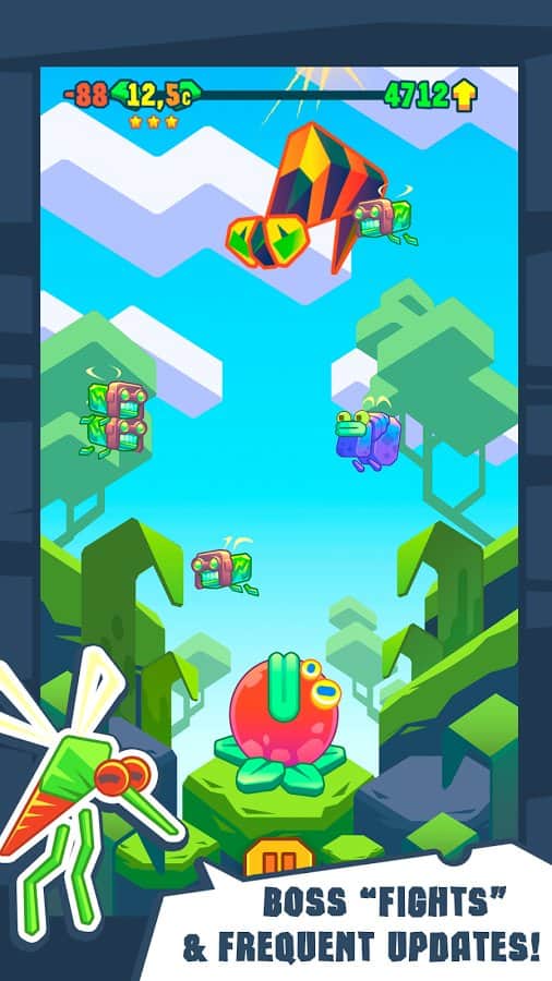 Hungry Jump – кликер на андроид, где вы будете помогать малышу Росянке вырасти в опасном мире. В этой игре вашей задачей будет нажимать на экран своего телефона или планшета для того чтобы малыш подпрыгивал и поедал летающих жуков и бабочек при этом опасался столкновений с коварными осами и шершнями. Нажимайте на экран в нужный момент и совершайте прыжки различной высоты, хватая ртом букашек. Получайте награды и многочисленные улучшения и проходите увлекательные уровни игры. Играйте со своими друзьями и добивайтесь рекордных результатов. Главными особенностями игры являются более 100 уровней, многочисленные бонусы и управление в одно касание.