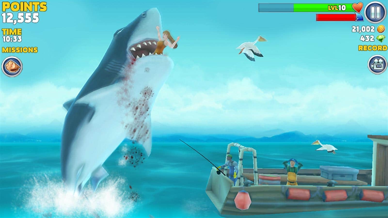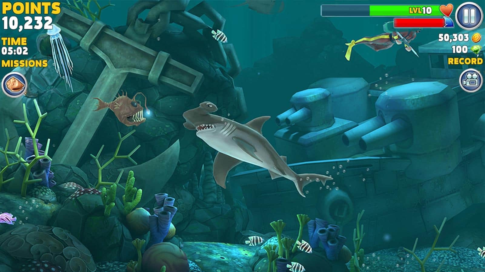 Hungry Shark Evolution - игра, в которой вам предстоит вырастить свою собственную акулу. Отправляйтесь в путешествие в открытый океан и начинайте поедать морских существ, пловцов, черепах и рыб для того чтобы вырасти и превратиться в огромную 10 тонную белую акулу. Также вашей задачей в этой игре будет проделывать различные миссии, нападать на подводные лодки и сражаться с опасными существами, живущими в морских глубинах. Ищите клад на морском дне, собирайте монетки и драгоценные камни и ставьте свои рекорды.