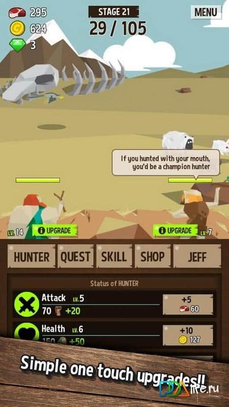 HunterAge – в далекие тысячелетия, когда ещё не было рынков и супер маркетов, еду добывали с помощью грубой физической силы, станьте королём доисторических охотников. Ваш помощник Джефф всегда с вами. Идите на охоту выслеживаете древних животных и динозавров. Запаситесь терпением и добудьте как можно больше добычи.