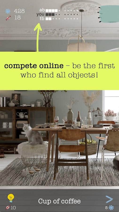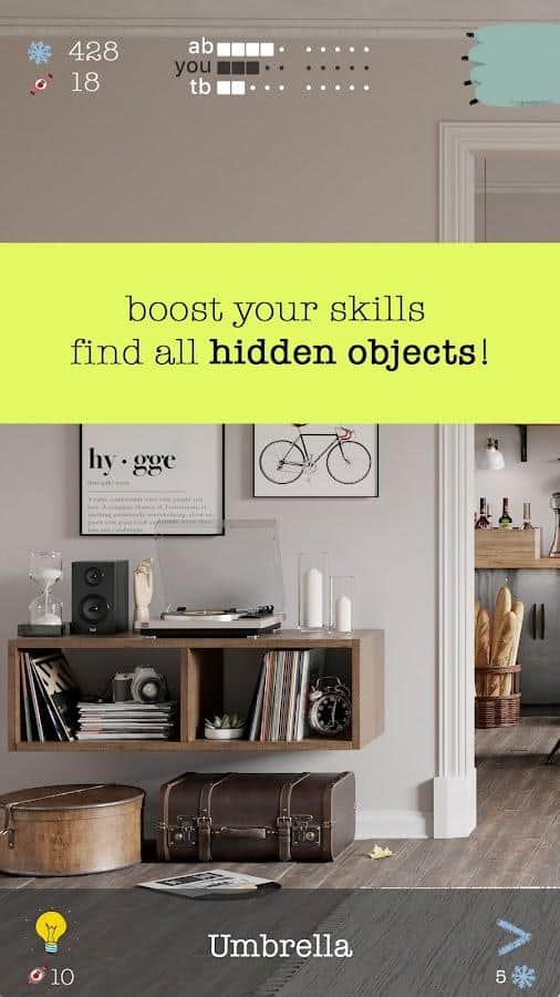 Hygge Challenge - Напрягите не мозг, а глаза! Насколько быстро вам удастся рассмотреть все несостыковки на одинаковых изображениях, прежде чем это сделает ваш противник? Испытайте возможности четко видеть определенные предметы, спрятанные в отдельных местах, чтобы всегда побеждать в турнирах и проверить собственную наблюдательность. Рассматривайте красивые картинки с продуманными дизайнами интерьера, так вам будет не только интересно, но и полезно. Полезность состоит в том, что у вас есть шанс визуализировать свой будущий дом или квартиру и мысленно уже жить там!