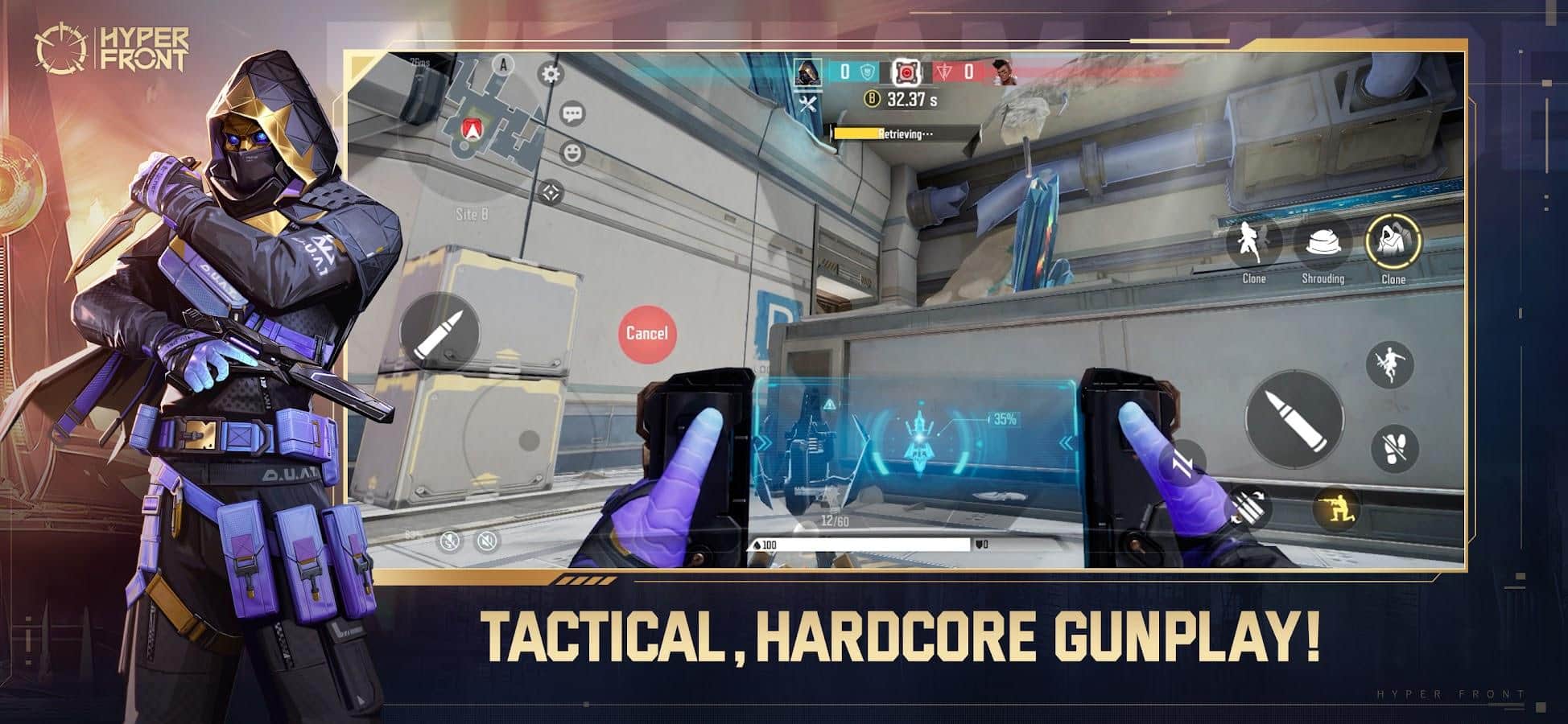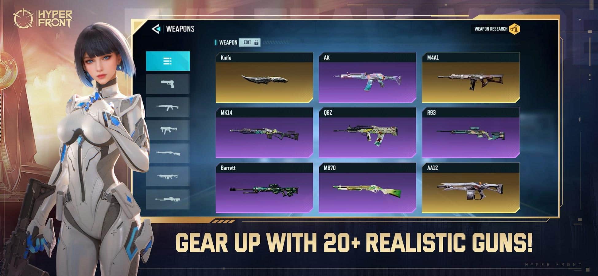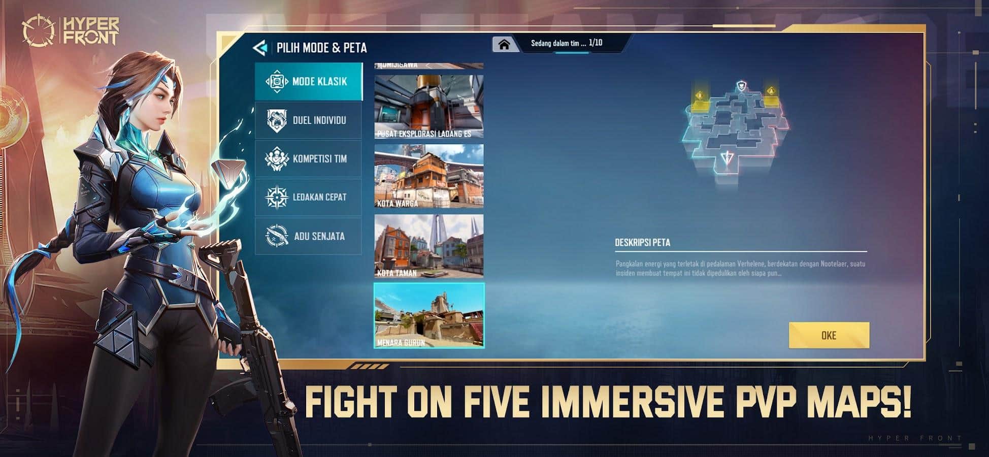 Hyper Front - проверьте способности каждого персонажа, ведь конкуренция в режиме PVP просто зашкаливает! События берут свое начало в научно-фантастическом мире, так званом будущем, где постоянно происходят какие-то перестрелки. Определитесь с режимом (Team Mode, Deathmatch, VS BOT, Quick SnD и Arms Race для Astrals), соберите сильную команду из 5 человек, возьмите в руки надежное оружие и отправляйтесь на поле битвы, в какой изучите доступную территорию и приступите к нападению и одновременной защите своих позиций.