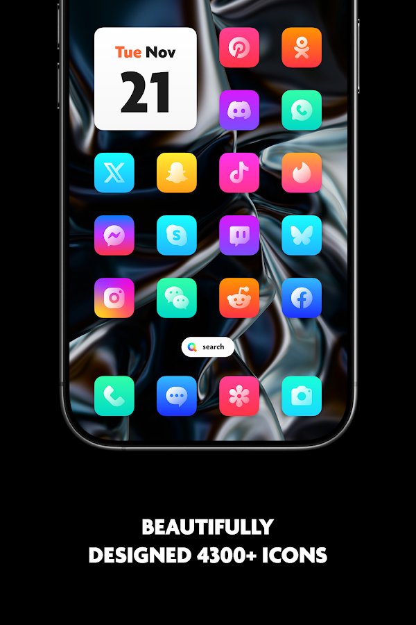 i18 Icon Pack - Обновите экран своего устройства со стильным набором значков, вдохновленных iOS 18. Насладитесь элегантным дизайном с закругленными углами, градиентами и изысканными цветами, которые придают интерфейсу современный и утонченный вид. В коллекции более 5100 значков, а также красивые облачные обои, которые регулярно обновляются. Поддержка светлого и темного режимов делает оформление гармоничным в любой среде. Пакет совместим с популярными лаунчерами и регулярно получает обновления, а в будущем появятся виджеты.
