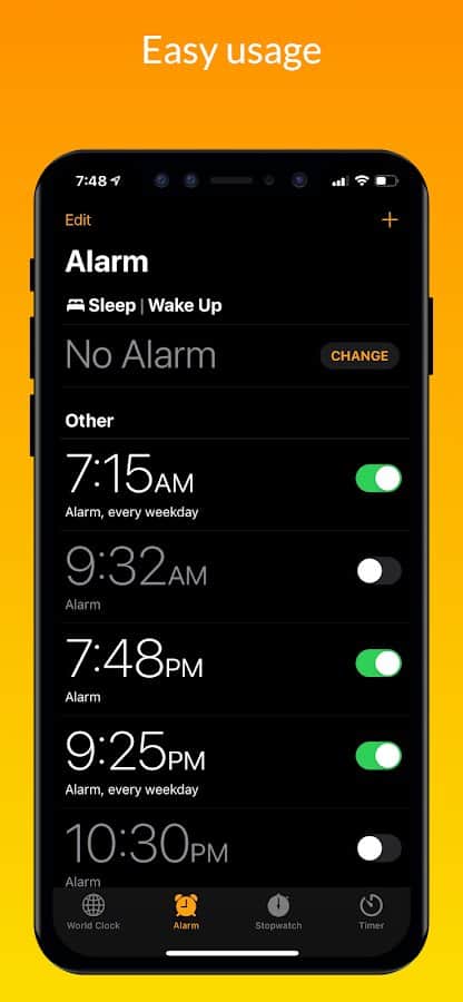 iClock iOS 15 - Clock Phone 13 - Вставайте утром с помощью удобного и элегантного будильника, которые разработаны специально от раздражительности. Интерфейс полностью правдоподобен будильнику на Iphone, а именно IOS 15, поэтому привыкнуть к нему есть возможность сразу. Выберите ваш текущий часовой пояс с помощью места, где вы живете, а затем настройте время, на которое вы хотите поставить рингтоны. Утром будильник будет звенеть той мелодией, что вы поставите внутри параметров, а весь экран будет заполнен напоминанием что пора вставать.