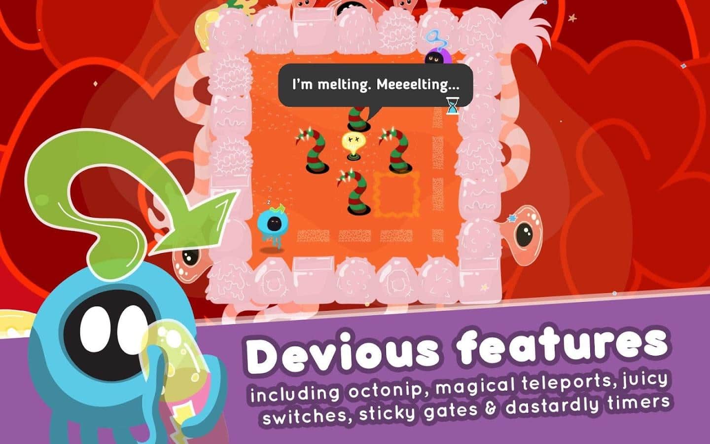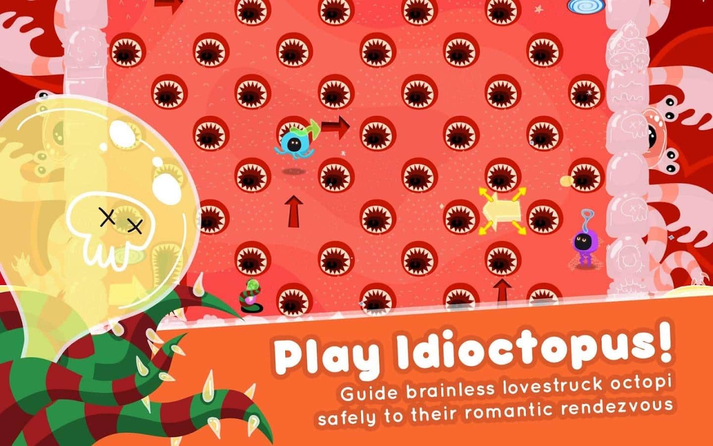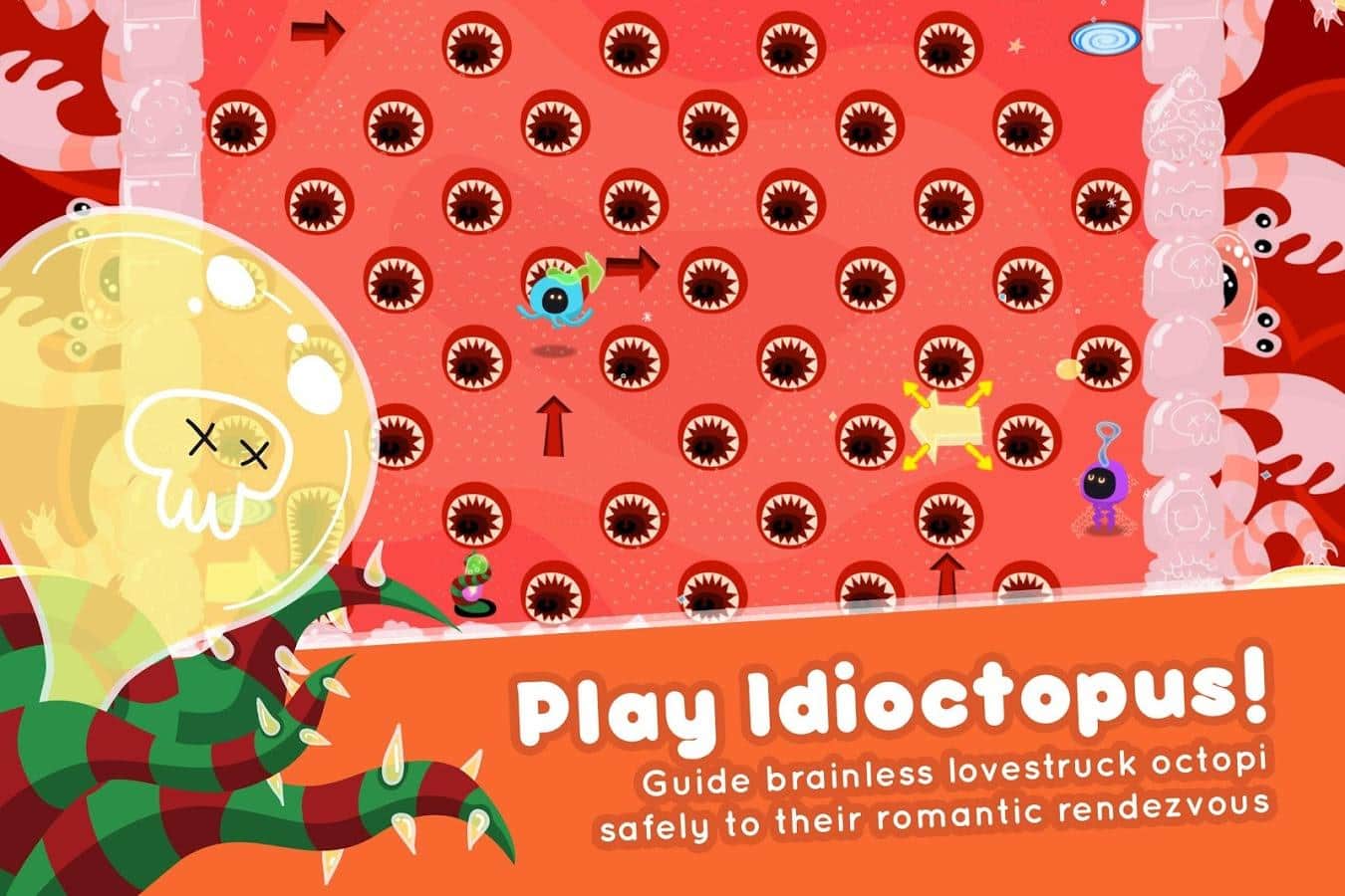 Idioctopus - увлекательная аркадная головоломка сюжет которой расскажет нам о романтической истории главными героями которой стала пара осьминогов. Наши друзья мечтают устроить себе романтическое свидание, однако все складывается против них и на пути друг к другу они встречают препятствие за препятствием. Ваша задача помочь незадачливым влюбленным все же добраться друг до друга. Игровая механика сочетает в себе элементы аркады и позиционной головоломки, что придает процессу динамику и интерес. Так же стоит отметить отличную стилизованную графику, простое управление, массу уровней. Idioctopus - игра которая прекрасно подойдет для того чтобы скоротать свободное время.