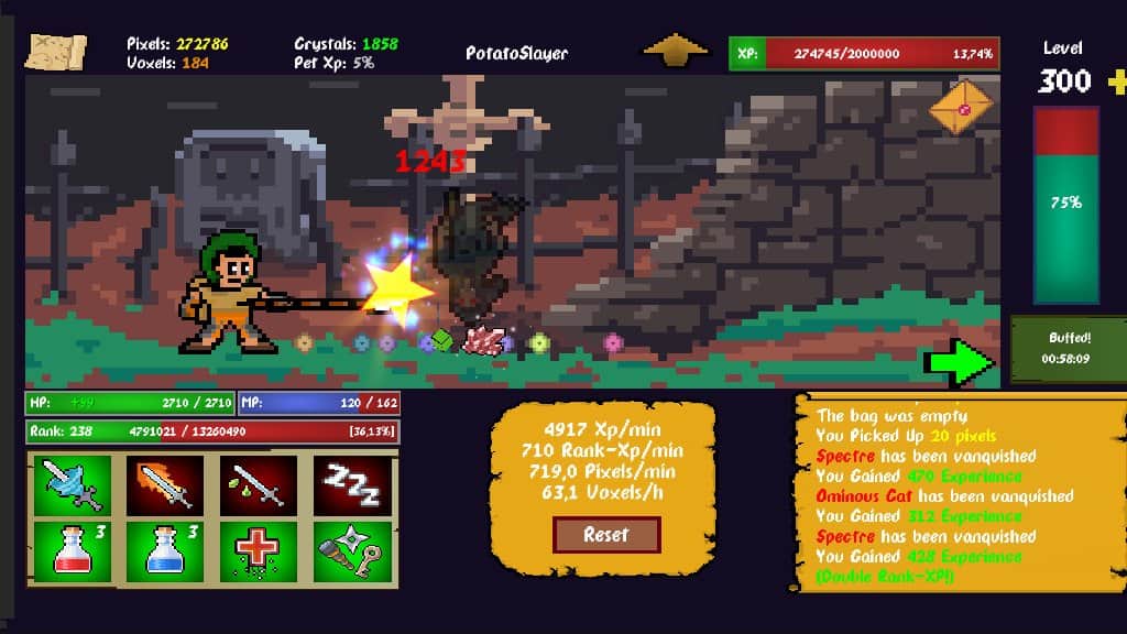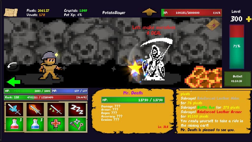 Idle Adventure - отправьтесь в длительное и очень опасное приключение за давно потерянной способностью - воображением! Исследуйте огромный остров с полчищами монстров, вампиров и прочей нечисти, чтобы снова уметь креативно мыслить и понимать. Собирайте самое что ни на есть различное вооружение и защиту, которые помогут вам отбить нападение злостного врага. Игра выполнена в пиксельной графике, которая отдает уважение ретро играм с консолей первых поколений.