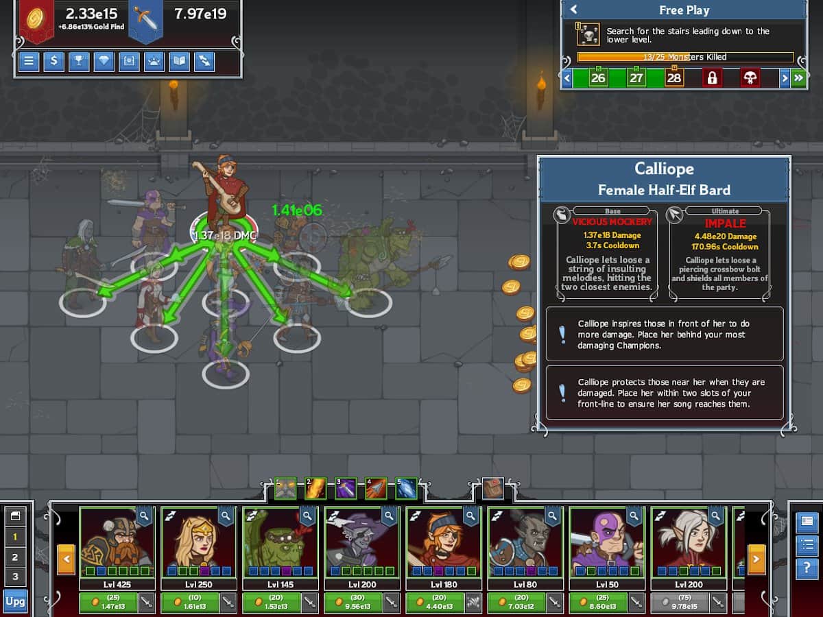 Idle Champions of the Forgotten Realms - приключенческий кликкер в котором вам предстоит собрать команду исследователей, войнов и бойцов и вступить в бой против различных монстров. Так же стоит отметить что игра создана на основе вселенной D&D, а элементы тактической пошаговой стратегии заметно разнообразят игровой процесс, а отличная графика и проработанные герои добавят колорита. Кроме этого вам предстоит принять участие в таких событиях как yranny of Dragons, Elemental Evil, Rage of Demons, Curse of Strahd, Storm King’s Thunder и Tomb of Annihilation.