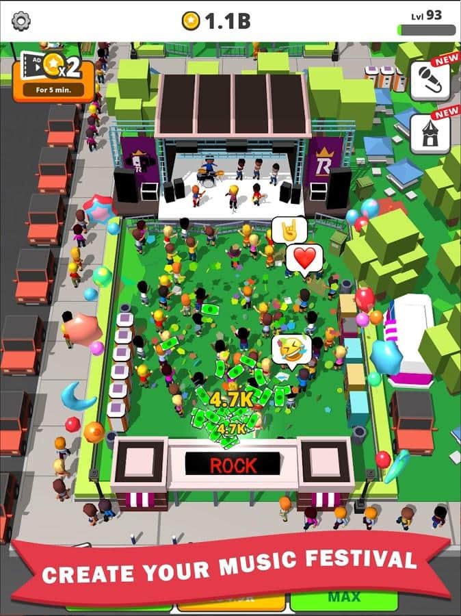 Готов зажечь в Idle Concert? Есть ли у тебя всё необходимое, чтобы стать настоящей РОК-ЗВЕЗДОЙ? Тогда зажги и докажи это! В этой эпичной игре нажатия на экран поднимут тебя на самый верх. Стань знаменитым! Стань великим! Стань богатым! Исполни свою мечту стать мегазвездой и завоюй весь мир! Создай и подними свою группу на верхушку музыкального Олимпа! Безостановочно улучшай свое шоу, добавляй ему новых красок, музыкантов и элементов. Взорви сцену и приведи сюда орды фанатов! И деньги к тебе польются рекой, чтоб сделать своё шоу еще более крутым!