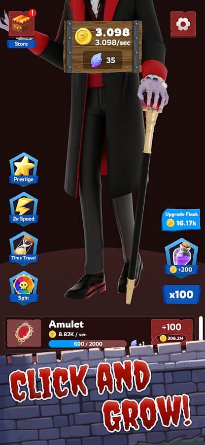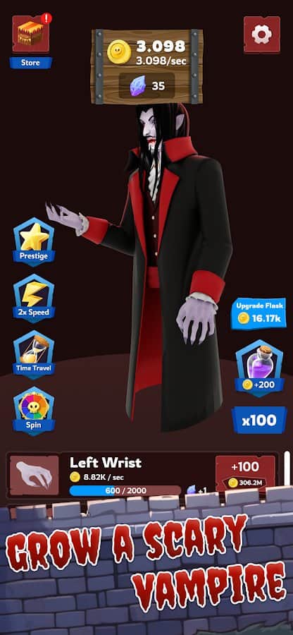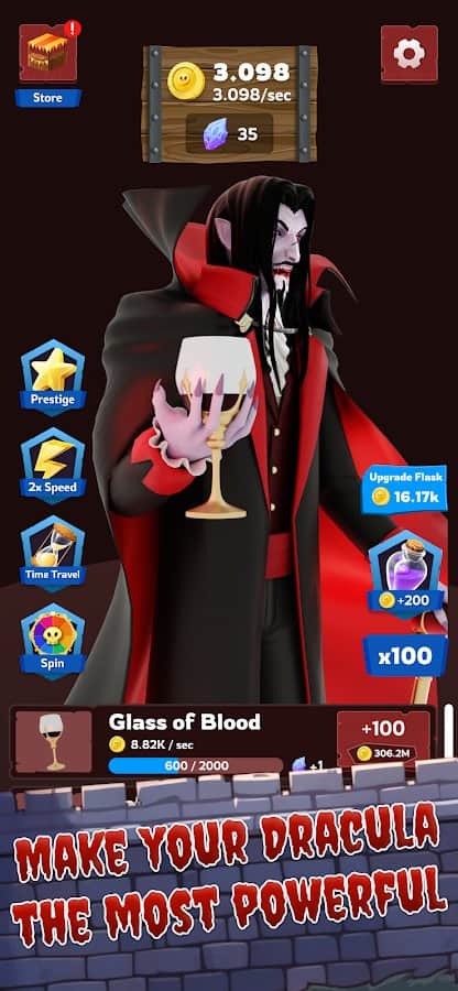 Idle Dracula - Ощутите вкус власти и бессмертия в захватывающей игре-кликере Idle Dracula! Эта уникальная игра перенесет вас в мрачный и таинственный мир вампиров, где вам предстоит стать новым владыкой ночи. С каждым кликом вы приближаетесь к своей цели: возводите зловещий замок, расширяйте свои владения и укрепляйте могущество своего клана. Вампирская эпоха ждет своего рассвета, и только вы можете привести ее к величию. Игра мастерски сочетает в себе элементы выживания, симулятора и idle-геймплея, предлагая захватывающий и разнообразный игровой опыт. Развивайте стратегическое мышление, адаптируйтесь к меняющимся условиям и докажите, что достойны носить имя Дракулы