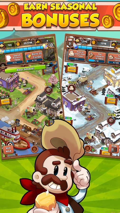 Idle Frontier: Tap Town Tycoon – увлекательная игра на андроид, где вы заболеете золотой лихорадкой и отправитесь покорять Дикий Запад. Для начала управляйте несколькими персонажами которые будут добывать золото и постепенно увеличивайте свой штат работников, которые будут работать на вас. Создайте по итогу свою собственную империю и захватывайте все большие территорий строя там шахты и заводы. Постройте свой собственный поселок и призывайте в него больше жителей. Получайте отличную прибыть от добычи золота и развивайте свой бизнес.