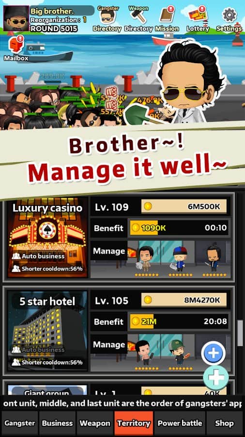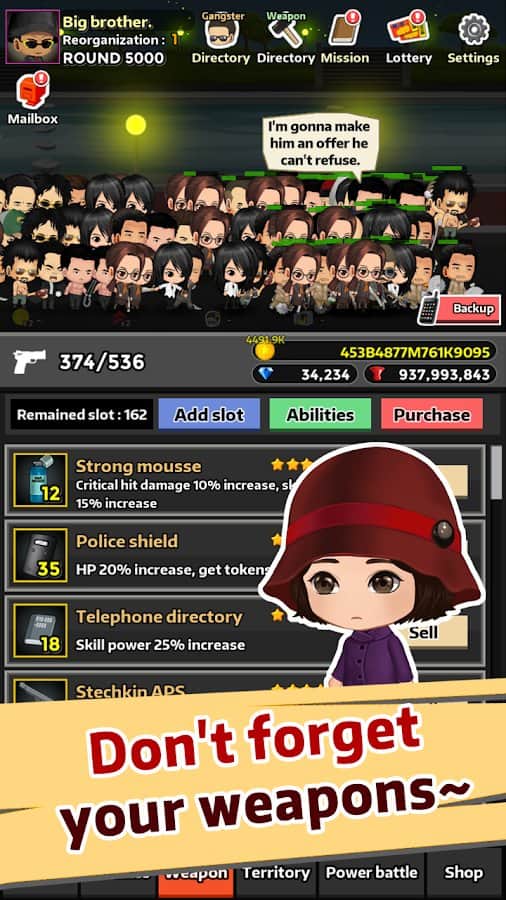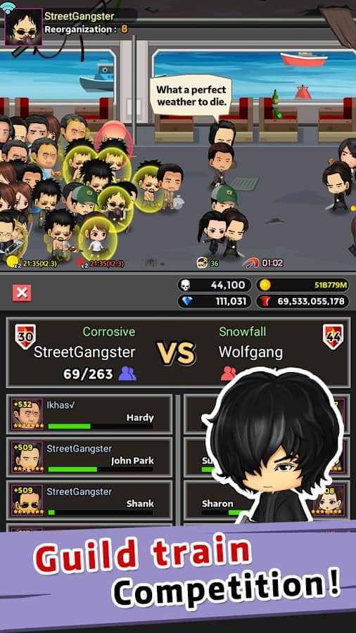 Idle Gangs VIP – у вас есть возможность собрать уникальную команду, состоящую из настоящих гангстеров. Игра сочетает в себе невероятные комбинации жизни преступного мира и сосуществование магических существ, драконов, рыцарей и даже титанов. Участвуйте в эпичных боях, управляйте персонажами касанием по экрану и завоевывайте территории и репутацию. Развивайте свою банду, приобретайте за монеты различное оружие и прокачивайте способности персонажей. Игра крайне нестандартная. Она увлечет вас динамикой и четкой графикой.