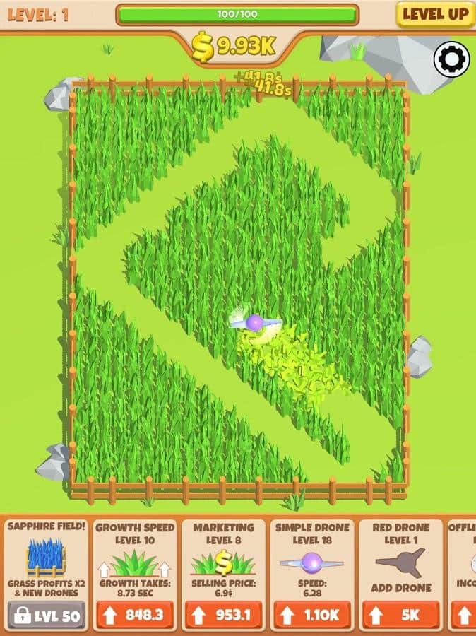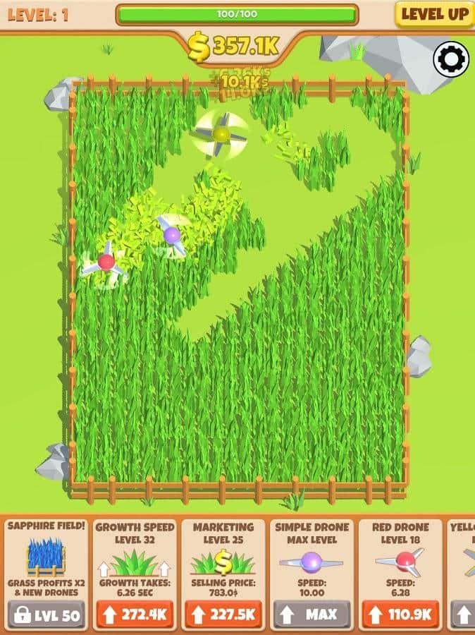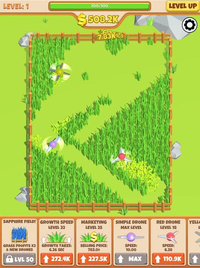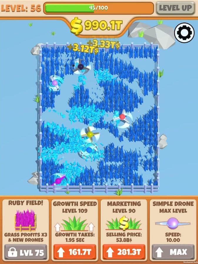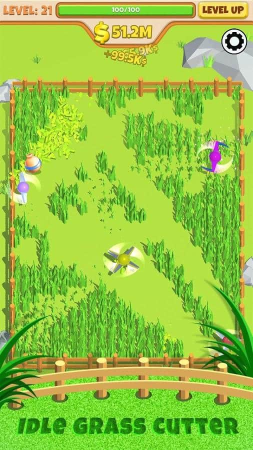 Idle Grass Cutter – откройте для себя веселую игру на андроид, где вы будете подстригать газон. В этой игре вы сможете подстригать свой газон с помощью одного прикосновения пальца к экрану. Также используйте автоматические газонокосилки, которые не так быстро будут справляться с поставленной задачей. Проведите пальцем по экрану и получите идеальный газон. Открывайте для себя новые газонокосилки, которые будут автоматически передвигаться по вашему участку и подстригать его. Приобретайте для себя полезные усиления и бонусы и приготовьтесь к переменам погоды и дождю.
