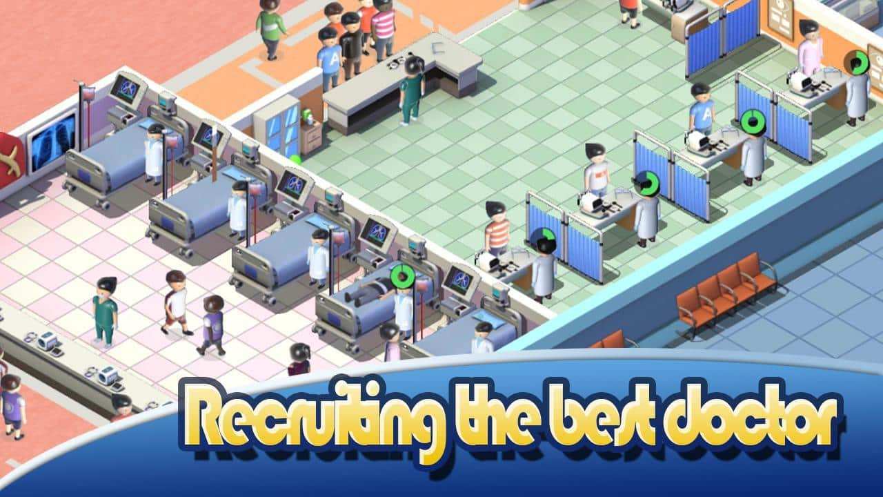 Idle Hospital Tycoon – симулятор на андроид, где вы будете управлять огромной больницей. Возьмите под свой контроль больницу и модернизируйте ее таким образом привлекая больше клиентов и мед персонал. Сделайте свою больницу самой современной и лучшей в районе и получайте прибыль. Приглашайте в свою больницу больше квалифицированных врачей и персонал и создавайте новые лекарства и осваивайте новые методы лечения пациентов. Делайте благоприятной работу врачей и расширяйте парковку. Рекламируйте свою больницу для привлечения большего потока посетителей. Нанимайте на работу менеджеров, которые будут управлять больницей в ваше отсутствие.