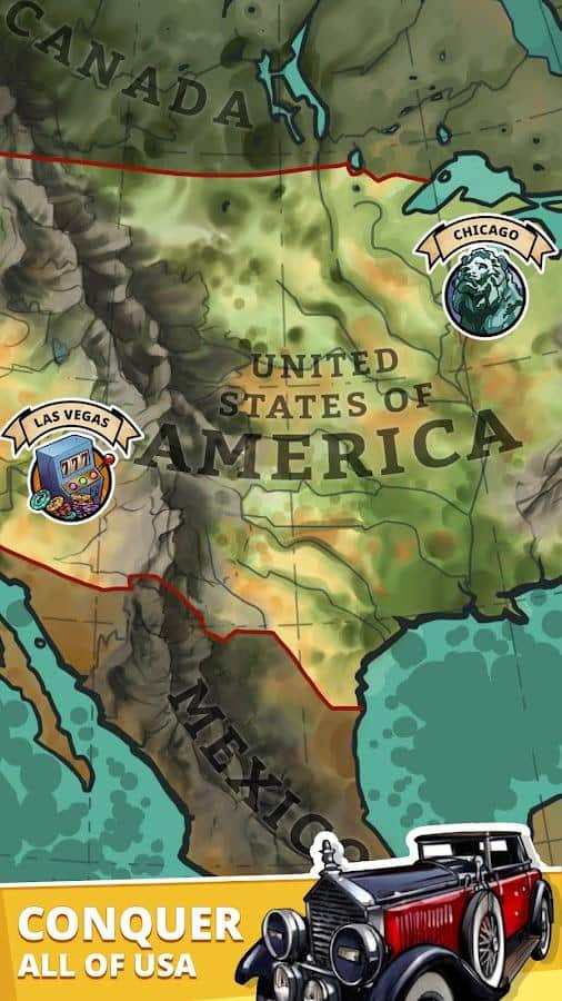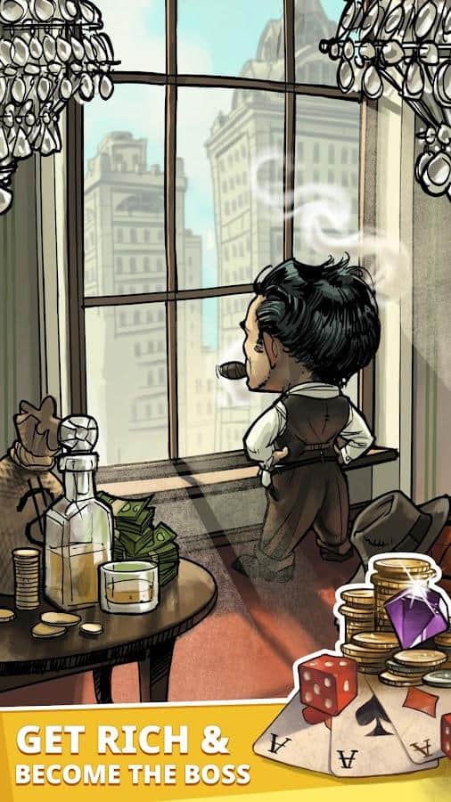 Idle Mafia Boss – это экономический симулятор главаря мафии. Действия разворачиваются в Нью-Йорке, в эпоху кризиса, безработицы и запретов. Игрок начинает свой путь обыкновенным неудачником, но стремится стать главарем преступной группировки, а позже и всего города. В начале вы совершаете мелкие преступления, чтобы накопить немного деньжат, далее нанимаете бойцов и управляющих, создаете новые рабочие места. Ваша изначальная цель, захватить район со всеми заведениями, приносящими прибыль. Постепенно расширить зону своего влияния на весь город. В игре очень приятная графика и простая незамысловатая механика. Организовав правильно свой бизнес, можно получать доходы, даже когда вы не в игре.