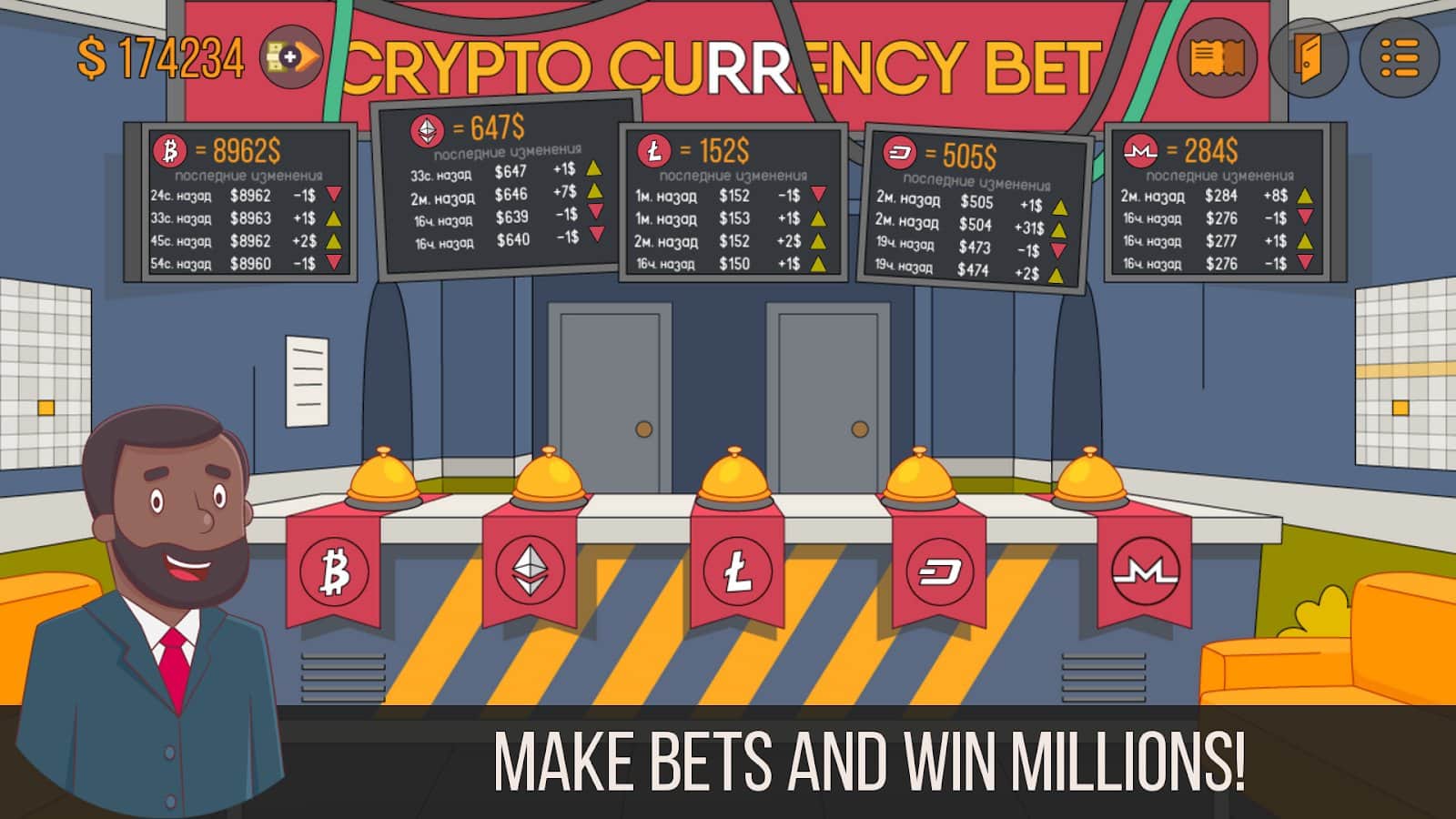 Idle Miner Simulator - Tap Tap Bitcoin Tycoon – экономическая стратегия на андрроид, где вы будете добывать криптовалюту. Эта игра представляет собой стратегию с элементами кликера где вы будете добывать криптовалюту сначала у себя дома, а затем расширяя свою ферму. Майните криптовалюту, участвуйте в торгах на бирже и продавайте свои действующие фермы. В игре вы найдете пять криптовалют: биткоин, эфириум, лайткоин, даш и монеро. Просто начните строить свой бизнес и получайте деньги. В этой игре вам также придется выполнять свои повседневные заботы и обязанности: расставлять ферму по своей квартире, ходить в магазин за товарами, выходить в город, посещать склад, работать в офисе и торговать на бирже.