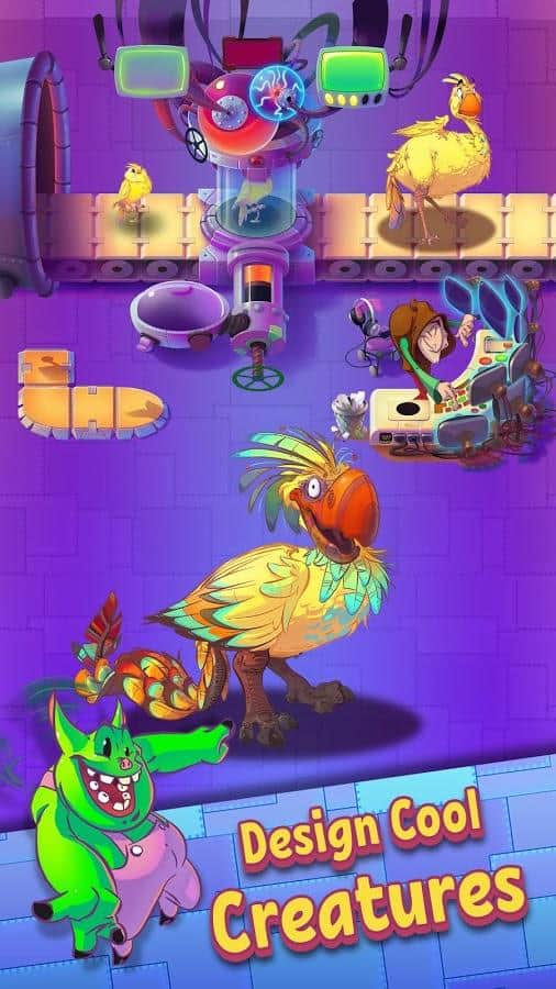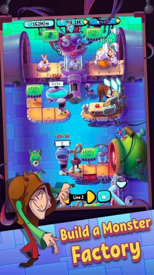 Idle Monster Factory – увлекательная игра на андроид, где вы будете выступать в роли безумного ученого. В этой игре вы окажитесь в мире где люди потеряли страх и стали безрассудными. И чтобы вернуть мир в прежнее русло им необходим злой гений. Вашей главной задачей в игре будет напугать детей во всем мире. Для этого отправляйте своих приспешников в прошлое и забирайте оттуда самые страшные предметы. Используйте различные механизмы и получайте экстракт ужаса. Используйте ужас в промышленных масштабах и превращайте милых животных в ужасных монстров которые будут пугать детей. Расширяйте и улучшайте свою фабрику монстров и создайте собственную империю ужаса.