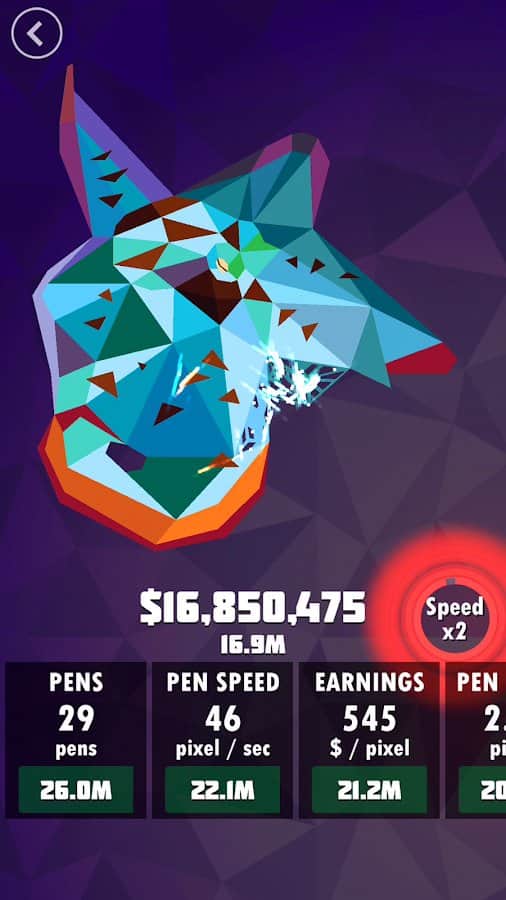 Idle Painter – увлекательная игра на андроид, где вы будете рисовать низкополигональные картинки. Для того чтобы рисовать картинки вам необходимо касаться экрана и световое перо будет перемещаться по экрану и закрашивать фрагменты изображения. Получайте красочные и разнообразные картинки и применяйте различные инструменты для рисования. Выполняйте многочисленные и разнообразные миссии и наслаждайтесь отличной графикой и приятной музыкой. Набирайте очки и получайте в награду новые инструменты и станьте настоящим художником. Открывайте для себя новые изображения, сложность которых будет увеличиваться.