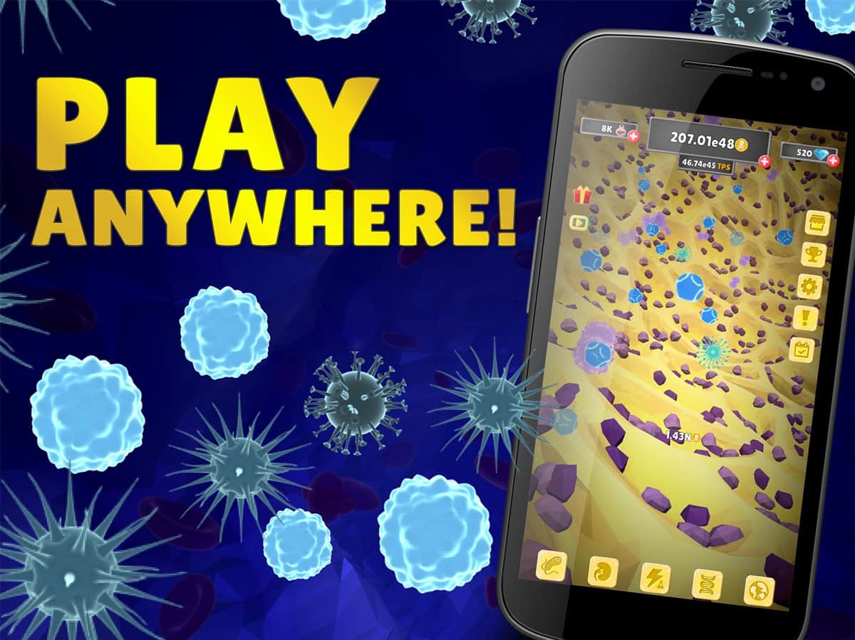 В игре Idle Plague вы станете настоящим ученым-микробиологом и будете исследовать микробы, вирусы, бактерии и органы в формате 3D. Кроме создания и исследования вы сможете их распространять, обновлять, развивать и распространять. Производство токсинов и мутация бактерий еще никогда не была такой доступной. Разблокируйте новые органы, чтобы применять их в производстве. Мир микробиологии теперь доступен каждому. Добивайтесь успехов в лаборатории, зарабатывайте награды и сражайтесь с боссами за полезные подарки. Простой игровой процесс, реалистичный дизайн и множество улучшений увлекут вас надолго.