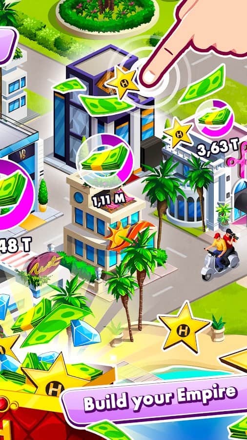 Idle Project Fame: Build a Beauty Empire – увлекательная игра где вы будете прокладывать свой путь к славе. В этой игре вы будете строить сеть бутиков и салонов красоты, и встречаться со знаменитостями. Станьте успешной бизнес-леди и постройте свой бизнес, заручаясь поддержкой голливудских звезд. Стройте самые различные здания и получайте отличную прибыль, развивая и расширяя свой бизнес. Получайте очки славы и выводите свой бизнес на новый уровень, а также нанимайте квалифицированных помощников, которые будут помогать вам, управлять бизнесом.