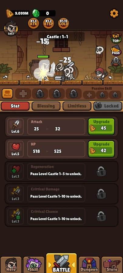 "Idle RPG Adventure Hero" - увлекательный кликер, который позволит игрокам с головой погрузиться в опасное приключение на стороне храброго героя. Ему предстоит сразиться со скелетами, вызванными заклинанием мага, чтобы спасти мир от полного уничтожения. Помимо битв, пользователи смогут развивать своего персонажа, повышая его характеристики, изучая новые навыки и искать лучшее снаряжение у оружейников и торговцев. Благодаря огромному разнообразию заданий, каждый игрок найдет себе занятие по душе и не скучит в мире "Idle RPG Adventure Hero".