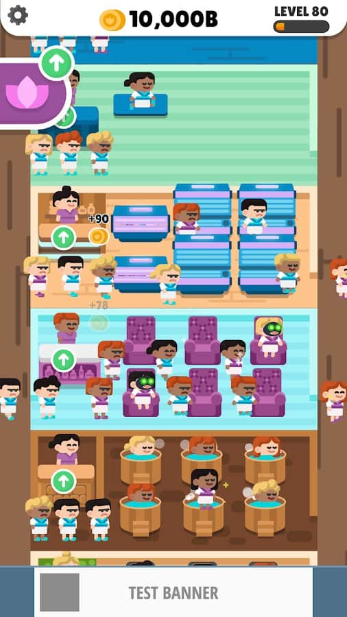 Idle Spa - Idle Spa - полное расслабление должно еще приносить пользу человеку! Слово Спа отображает глубокий смысл, именно с ним ассоциируется спокойствие и омоложение. Специальные лечебные воды помогают коже получить великолепный блеск, мягкость и здоровый вид. Создайте удивительное местечко с подобными процедурами, чтобы обеспечить такие эмоции для каждого жителя в городе. Серьезно возьмитесь за бизнес и разнообразьте свои услуги: ванные с любыми наполнениями, маски для лица, солярии, бочки с горячей водой и хорошие парилки. Возьмите на работу менеджеров и наблюдайте!