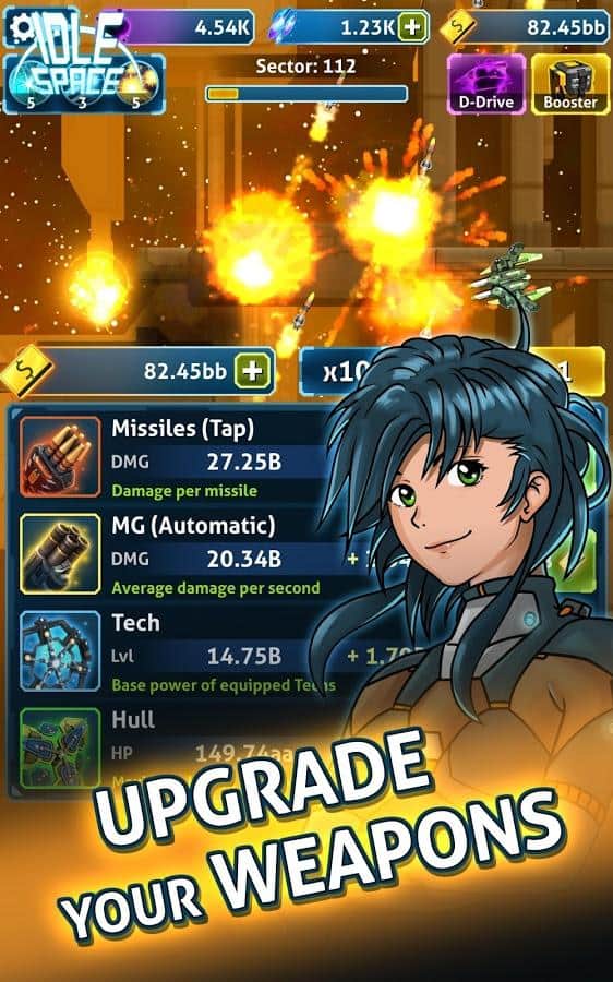 С того момента как жанр кликкеров получил просто небывалую популярность разработчики всех мастей и калибров принялись плодить проекты данного направления, порой радуя нас целыми пачками релизов. Однако большая часть выходящих в свет игр кликкеров просто не заслуживала внимания. Но порой случаются и приятные сюрпризы в виде качественных продуктов например таких как Idle Space - Endless Clicker. Idle Space - Endless Clicker - классический аркадный кликкер с бесконечным геймплеем, выполненный в космическом стиле и не лишенный экшен составляющей. И так, в вашем распоряжении космический боевой крейсер, по средствам которого вам необходимо уничтожать орды врагов, за которые вы будете получать премиальные, а на них в свою очередь улучшать корабль и уничтожать еще больше инопланетной нечисти.
