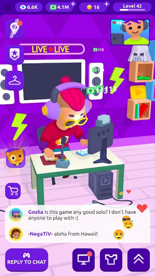 Idle Streamer: Tuber - Всего за несколько стримов вы можете превратиться в популярного человека и обрести новые богатства, соответствующие вашей жизни как лучшего стримера в своей области! Проводите регулярные трансляции того, как вы проводите свободное время за играми, и рассказывайте не только о прохождении игр, но и о своей жизни. Получая много лайков вы становитесь заметнее в доступной категории, и чем больше людей к вам подключится для просмотра — тем больше шансов получить как можно больше донатов. За полученные деньги покупайте себе лучшее оборудование и улучшите студию для съемок!