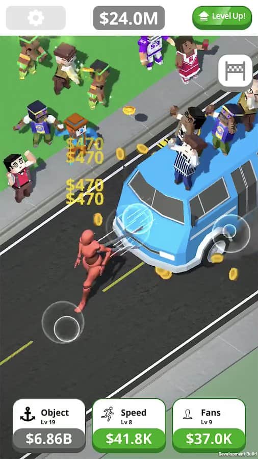 Idle Tap Strongman – казуальная игра на андроид, где вы будете управлять самым сильным человеком в мире. Возьмите под свой контроль сильного героя и протащите как можно дольше свой груз по трассе. Вашему герою будет не очень легкой тащить за собой груз, но постарайтесь пройти все испытания. Тяните грузы с различными героями и набирайте достаточное количество очков. Продержитесь как можно дольше в этой игре и установите свой рекорд соревнуясь с друзьями и другими игроками со всего мира.