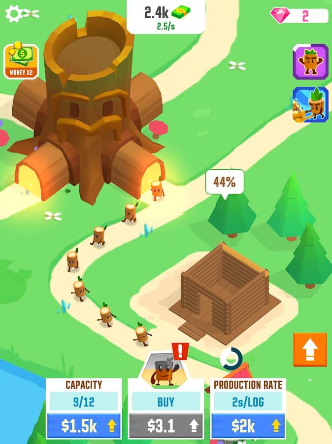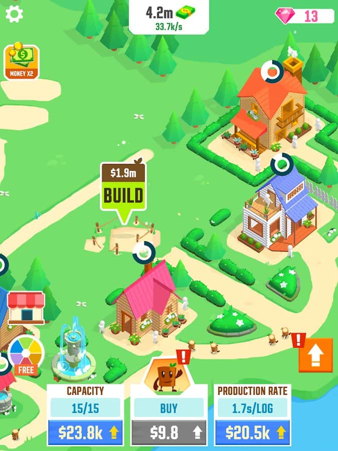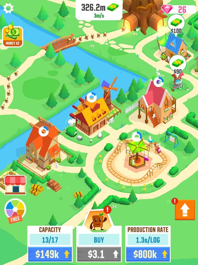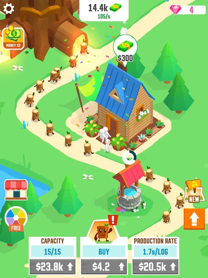 Постройте большой, деревянный город Idle Tree City благодаря милым бревнам, которые выходят из всемогущего большого дерева. Начните с маленького колодца из маленького количества бревна и дойдите до целых домов, которые не так уж и быстро строятся. Чтоб бревна доходили быстро до целей - кликайте много раз по экрану. Открывайте новые постройки: дома, мосты, детские площадки, фермы, колодцы, а затем собирайте с них прибыль в виде денег. Улучшайте свои возможности и оживляйте все вокруг, не видя границ.