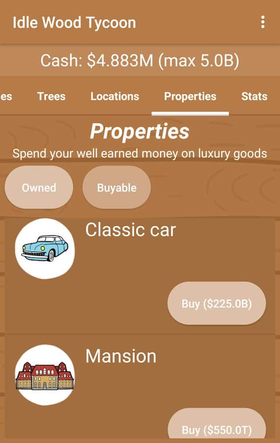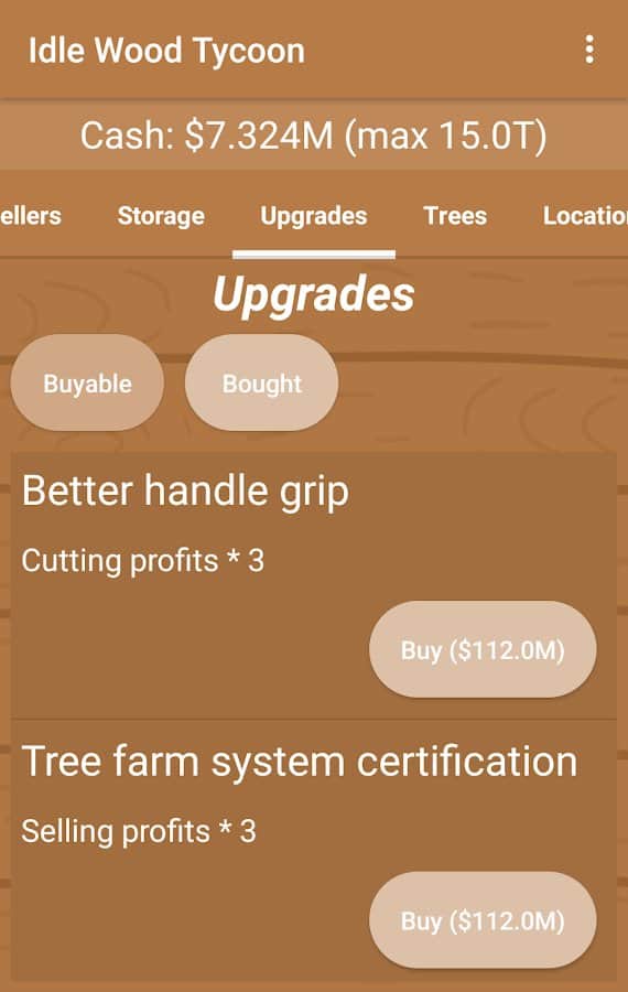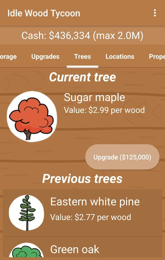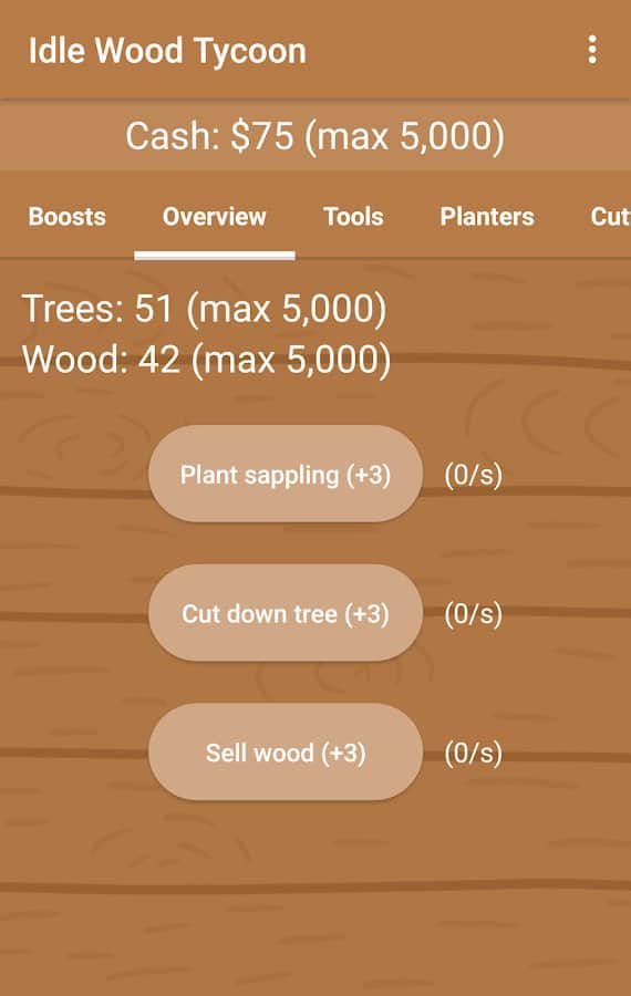 Idle Wood Tycoon – отличный симулятор на андроид, где вы станете самым богатым человеком в мире продавая деревья. Начните свой бизнес с нескольких деревьев и постепенно набирайте обороты продавая и покупая новые. Обновляйте свой инструмент, нанимайте на работу работников, покупайте лучшие деревья и приобретайте лучшие участки земли. Создайте свой бизнес и становитесь с каждой минутой все богаче. Управляйте своей фермой деревьев по-своему и добейтесь невероятных результатов. Кликайте как можно чаще по экрану своего телефона или планшета и наслаждайтесь достигнутыми результатами.