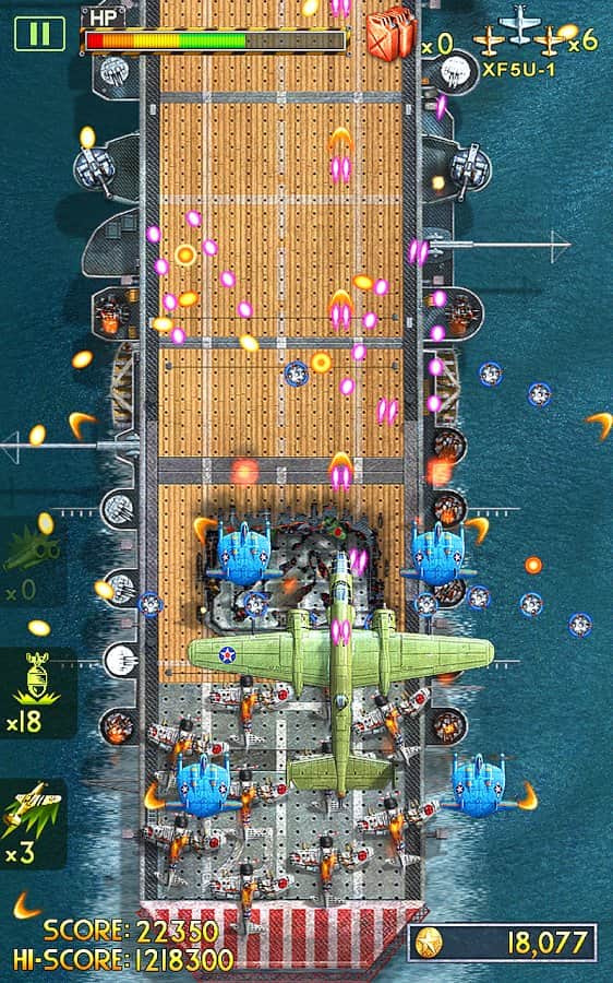 iFighter 2: The Pacific 1942 - эта игра для любителей стрелялок и воздушных баталий. Отличный скролл-шутер для андроид с видом сверху перенесет вас в годы Второй Мировой в Тихий океан! Множество врагов, бесконечные баталии, оружие и пушки, отличная графика! Вас ждет несколько истребителей с разными особенностями, 3 вида сложности и разные миссии, а также магазин оружия, в котором можно приобрести супер пули, неукротимые снаряды и многое другое...