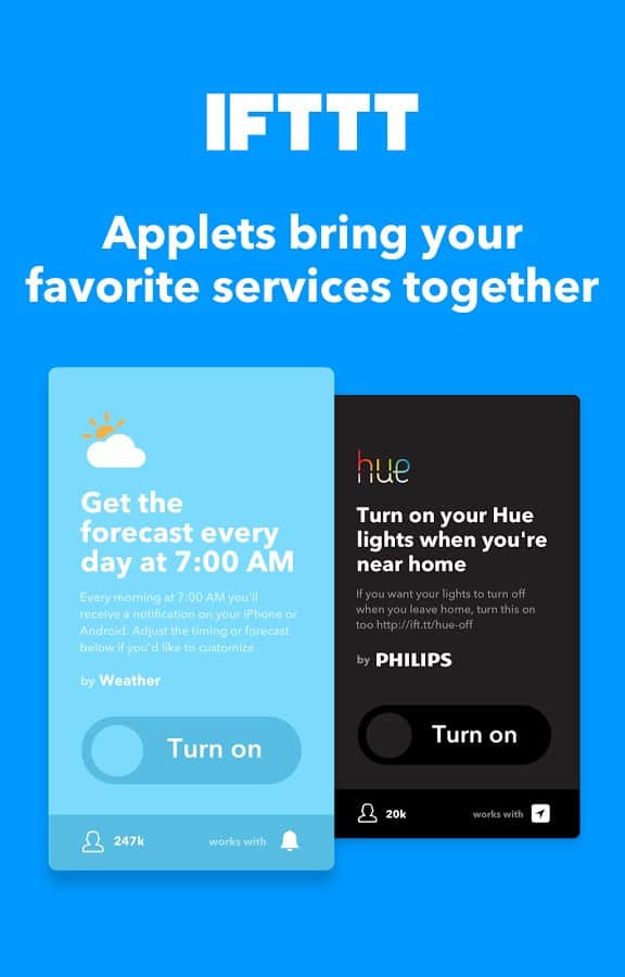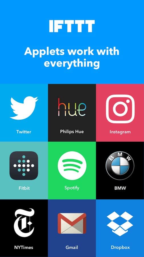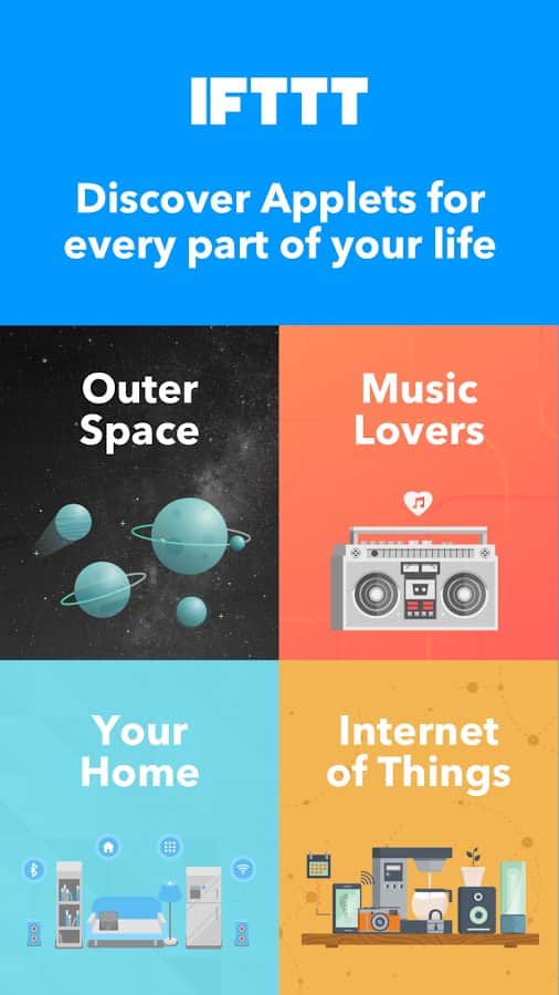IFTTT - Занятное приложение с весьма необычным функционалом. Это многофункциональная сборка различных приложений и сервисов, которые не только очень помогут вам и будут полезны, но так же имеют в себе одну уникальную функцию. С его помощью вы сможете комбинировать различные сервисы и создавать совершенно новые приложения. К примеру если объединить гугл карту с сервисом по недвижимости вы сможете увидеть все их на крате. Так же вы сможете создавать быстрый доступ.