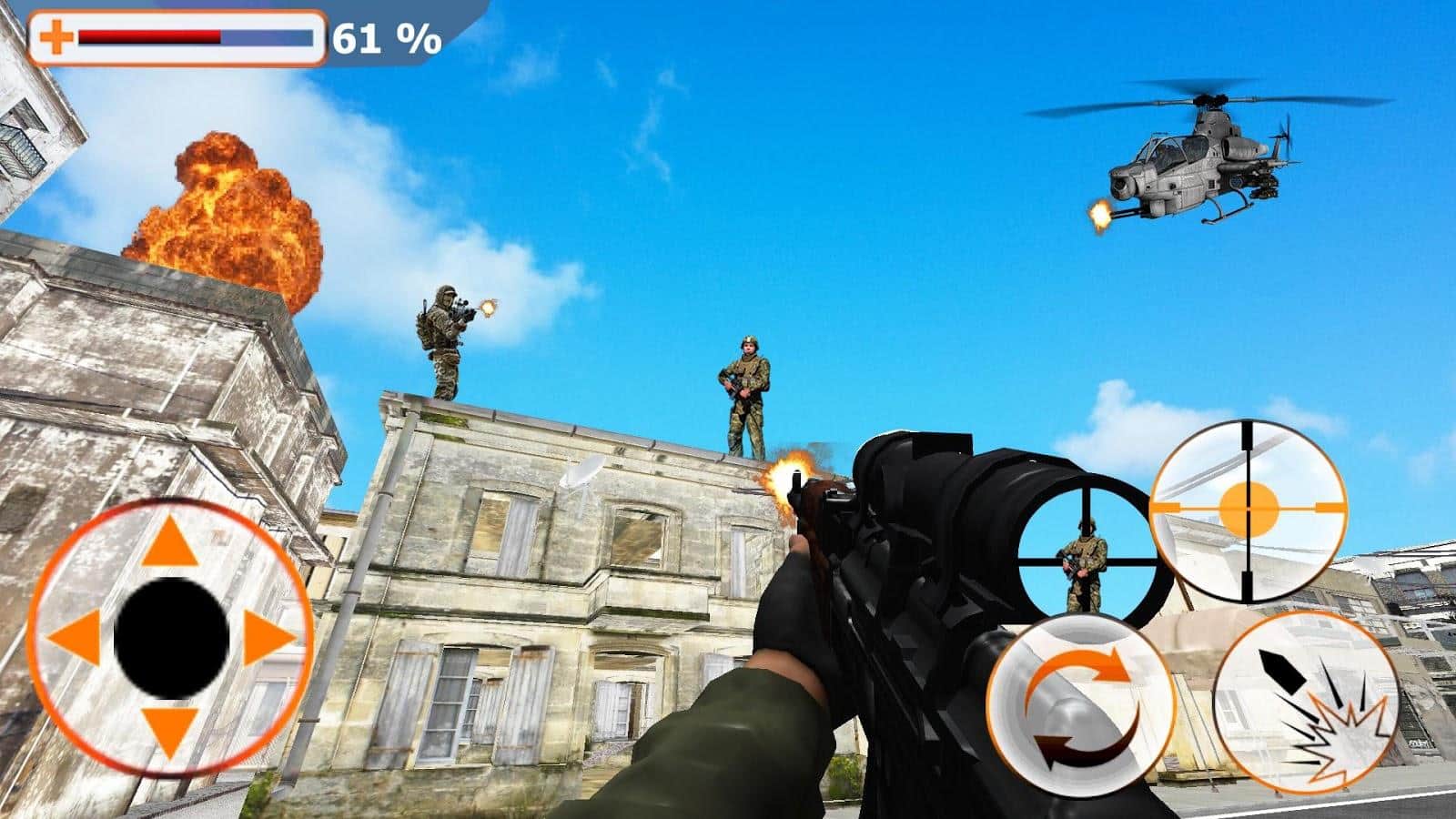 IGI Commando City Rescue – игра на андроид, где вы будете выступать в роли снайпера. Возьмите в руки современную винтовку, займите удобное положение и ведите огонь по преступникам и террористам. Вы получили информацию о том, что ваш город захватили террористы и теперь вашей задачей будет, уничтожать поставленные цели и спасти мирных жителей. В вашем распоряжении будут самые современные снайперские винтовки, такие как M1911, АК47 и MP5. Выводите своего снайпера на огневую позицию и выполняйте поставленные миссии. Игра порадует вас плавным управлением, хорошей графикой и различными миссиями.