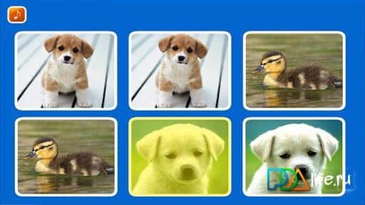 маджонг - есть 6 картинок и малыш должен выбрать 3 пары одинаковых изображений