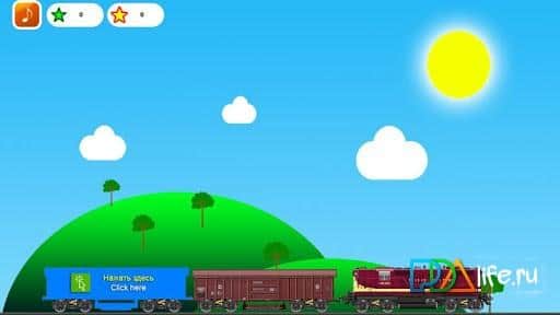 собери поезд - соберите поезд и он начнет свое путешествие от станции к станции днем и ночью, собирая по пути звезды. Есть разные поезда разных цветов.