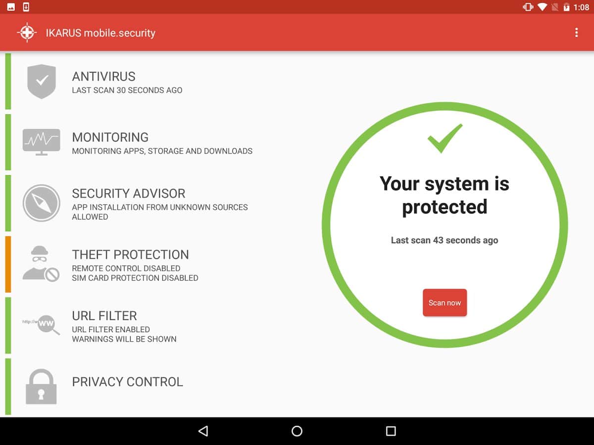 IKARUS mobile.security – отличное приложение на андроид от разработчика IKARUS Security Software для максимальной защиты вашего устройства от любого вредоносного программного обеспечения. Антивирус будет автоматически обновляться, проверять загружаемые файлы и установленные приложения. Так что с IKARUS mobile.security ваш смартфон находится под надежной защитой.