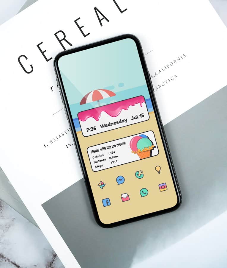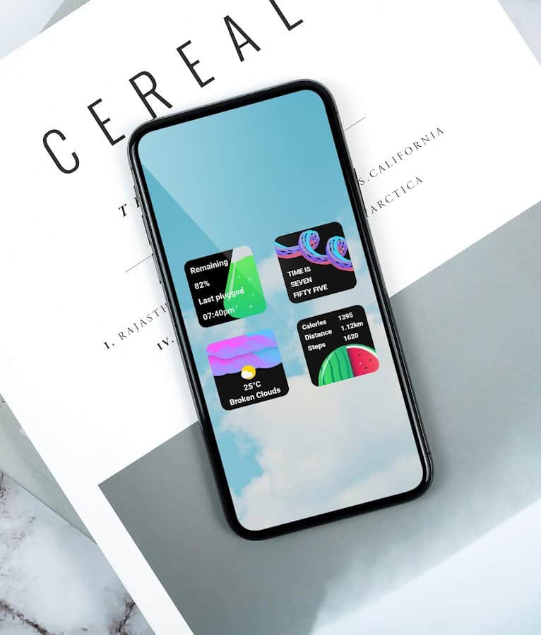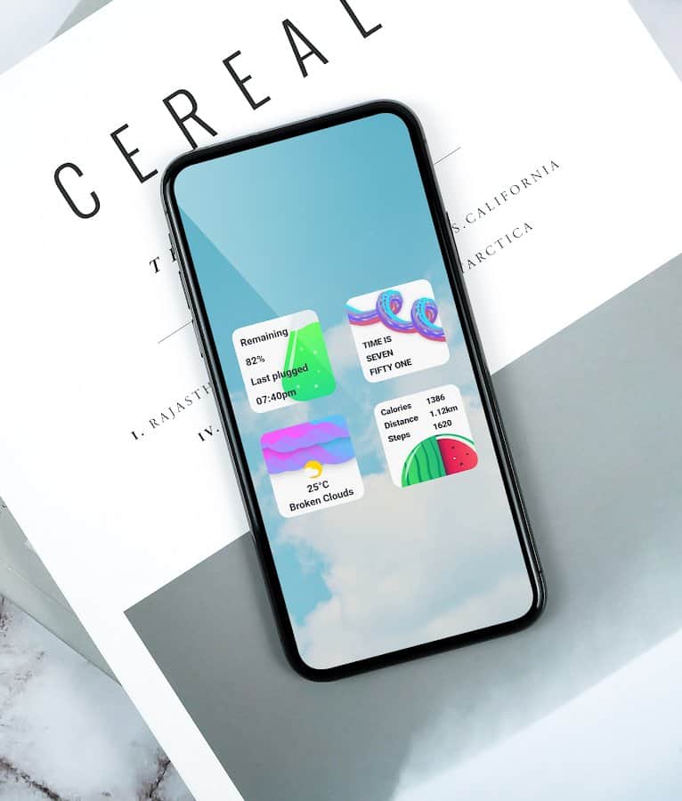 Illustrator widgets - KWGT Cool Widgets позволяет применять яркие иллюстрированные виджеты (26 штук) для пользователей KWGT. Наличие дополнительных виджетов с регулярным обновлением дает возможность добавлять и использовать новые преимущества. Небольшие виджеты имеют квадратную форму размера 2×2, а те, которые имеют размер 4×2, представляют собой сетку. Пользователь может использовать персональные макеты и создать виджеты любого размера на свое усмотрение. Дизайн проработан до каждой детали, но в то же время является простым и приятным.