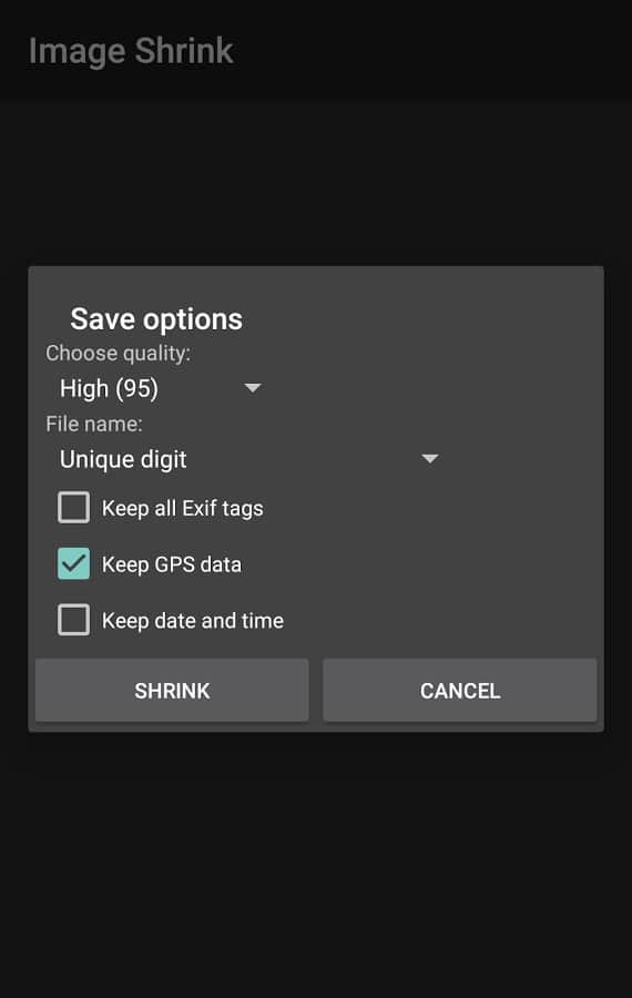 Image Shrink - Уникальное приложение которое поможет вам работать с изображениями. Оно создано что бы выполнять одну простую функцию, это перепаковывать фото под нужные вам параметры. Это не фото редактор, а скорее конвертер, которые изменит размер, и качество фотографии. Так же, помимо этого, приложение сможет скопировать геоданные, тэги, а так же дату и время создания оригинала. Вы сможете настроить конвертирование таким образом, что бы изменять сразу группы фото, при этом давая им уникальные номера, а так же автоматически удаляя оригиналы.
