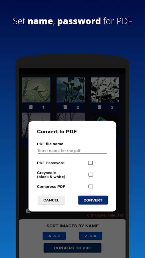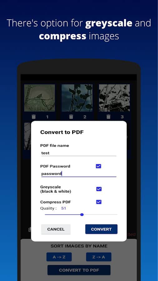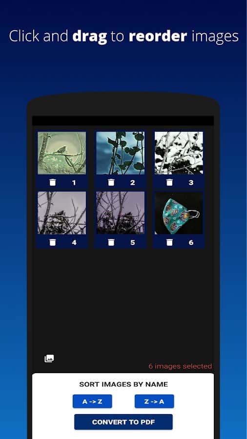 Преобразите любые загруженные изображения в формат файла PDF, будь то PNG или JPG! Не важно какое количество фотографий вы загрузите за один раз, важно только выбрать в каком порядке они будут идти, это можно сделать вручную или с помощью сортировки по буквам. Выберите индивидуальные настройки для получения необходимого качества файла, и если хотите, введите личный пароль на отображение. После сохранения работы вы можете удалить её, поделиться с другими людьми, или же вернуться на прошлую страницу и отредактировать исходник.