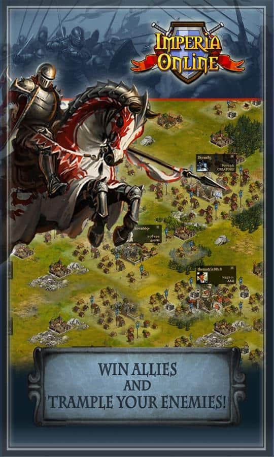 Imperia Online - Free Medieval Strategy Game - онлайн стратегия, которая перенесет вас в мир той эпохи, когда еще не создали порох. Этот мир острых мечей, метких луков и боевых коней. Присоединяйтесь к другим игрокам и создайте свою непобедимую империю, населите ее дворянами и управляйте величайшей армией отважных воинов. Владейте огромными территориями и отвоевывайте все новые у своих соперников по игре и станьте знаменитым королем. Играйте со своими друзьями и создавайте с ними непобедимые альянсы и владейте всем средневековым миром.