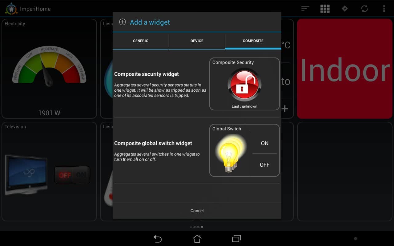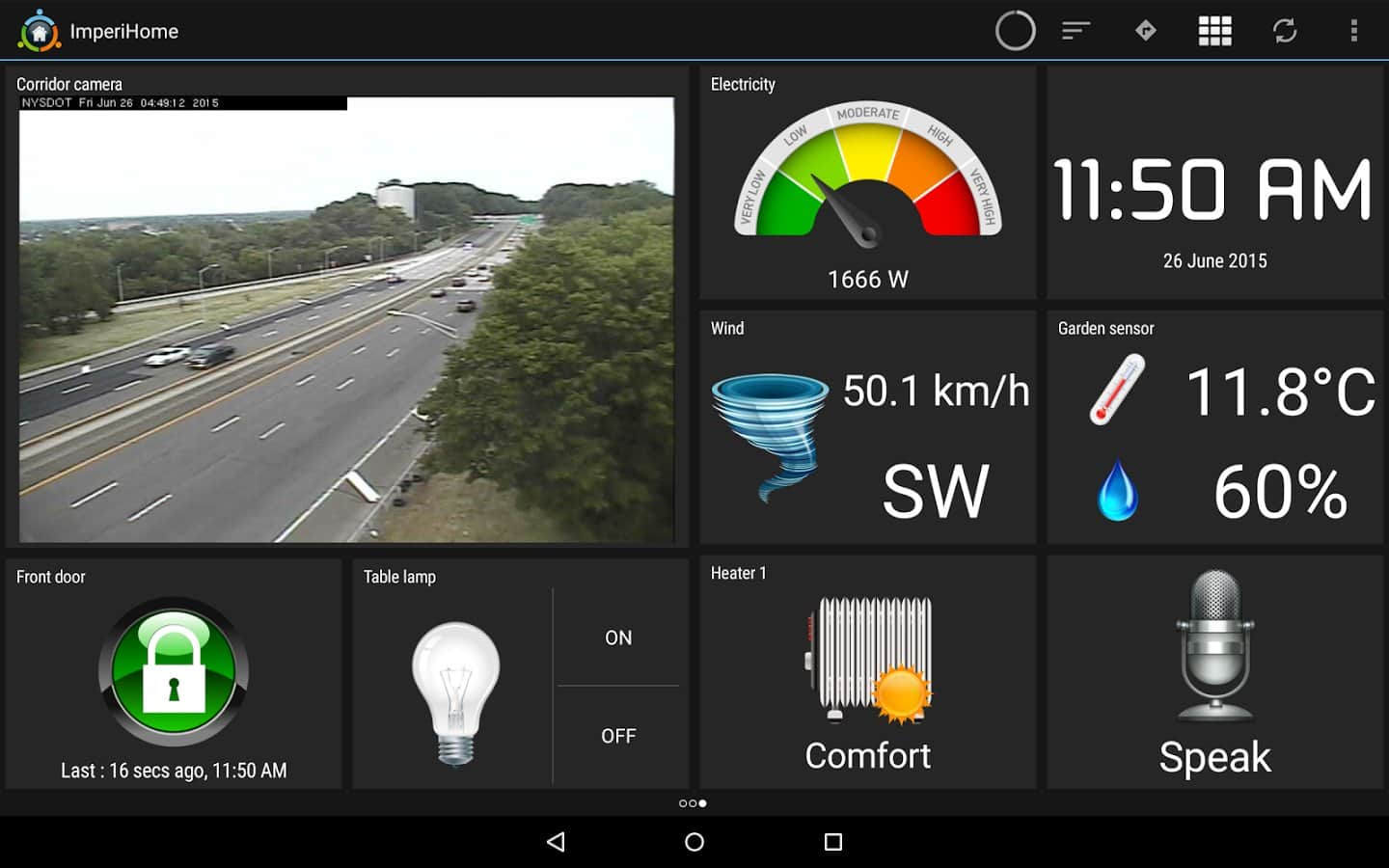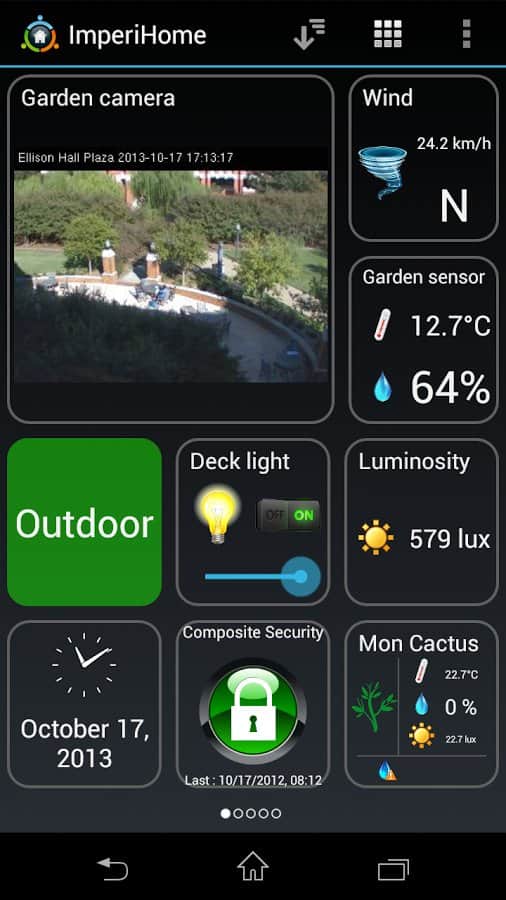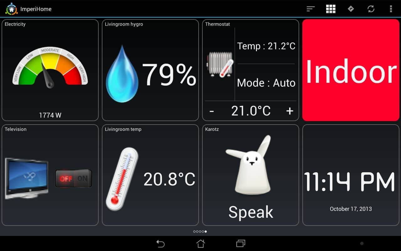 ImperiHome - с помощью этого приложения и вашего android устройства вы сможете управлять умным домом. В самом доме для этих целей можно использовать планшет, а на улице смартфон. Приложение понимает распознавание голоса.