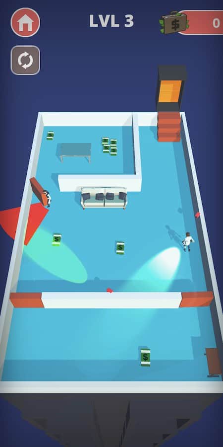 Impossible heist 3D - Cop escape and sneaking – играйте за грабителя и обдурите полицию. Совершайте ограбления и различные преступления, пробирайтесь в банки и не попадитесь на камеры видеонаблюдения. Вы можете самостоятельно выбрать персонажа и его внешность, проходите уровни и задания, выполняйте миссии и получайте награды, просто управляйте оправим процессом и не тратьте силы и время на разбор динамики. Нажимайте на экран и цельтесь, а затем просто отпустите палец. Покупайте улучшения и незаметно скрывайтесь.