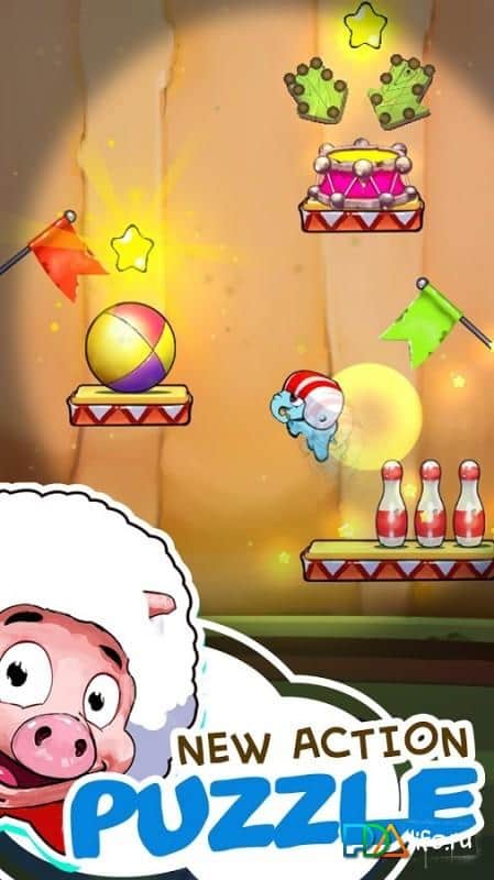 Incredible Blue Rocket – увлекательная игра головоломка на андроид, с реалистичной физикой. В этой игре вы будете управлять слоном циркачом, которому необходимо выполнять акробатические номера. Запускайте своего слоника в полет, стреляя им как из рогатки, и используйте для этого специальную линию, которая указывает траекторию полета. По пути собирайте как можно больше звезд и обходите все препятствия, на своем пути добираясь до финишного барабана и собирая огромное количество аплодисментов. В игре представлено более 100 уровней с отличной физикой и веселыми акробатическими номерами, которые вы должны исполнять.